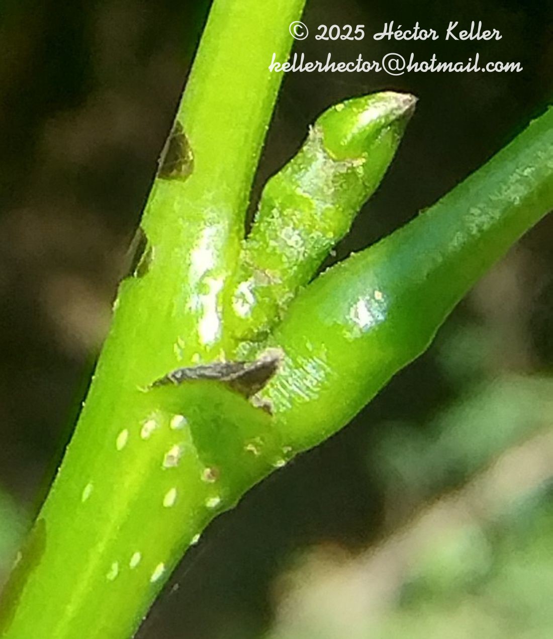 Arbol de 4-20m alt., tronco recto de 13-38 cm diám., corteza grisácea desprendiéndose en placas delgadas, más o menos rectangulares. Ramas ascendentes, glabras, con lenticelas; copa laxamente foliosa, obpiramidal. HojaS alternas, pinadas, imparipinadas, glabras o pubérulas cuando jóvenes; estípulas fugaces, lingiiiformes, 2-3 mm long. x 1 mm lat.;pecíolo y raquis 6-15 cm long., cilíndricos, pecíolo y peciólulos pulvinados, raquis sinuoso; pinas 5-9, alternas, 5-9 cm long. x 2-4 cm ,lat., lustrosas en el epifilo, cartáceas, elípticas o lanceoladas, ápice acuminado, base cuneada o redondeada, margen entero. Panojas axilares o terminales, péndulas; ejes de la inflorescencia, brácteas, bractéolas y alabastros rufo-pubescentes. Flores verde-amarillentas, S-meras, 6-7 mm long.; cáliz gamosépalo con dientes redondeados; corola zigomorfa, estandarte sedceo-pubescente por fuera, quilla con un fondo de saco· a cada lado; estambres 10, monadelfos; ovario estipitado, disco basal, estilo corto, algo curvado; óvulos 1. Sámara largamente estipitada, semilla basal, ala apical glabra, rostrada, castaño-clara, subcoriácea.