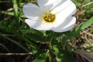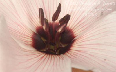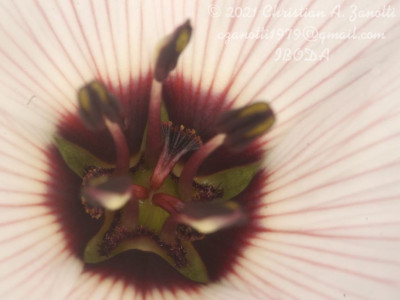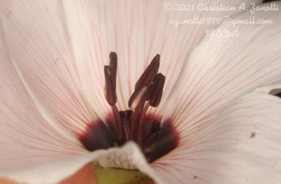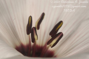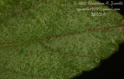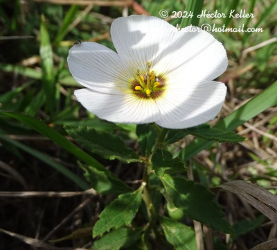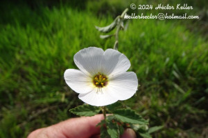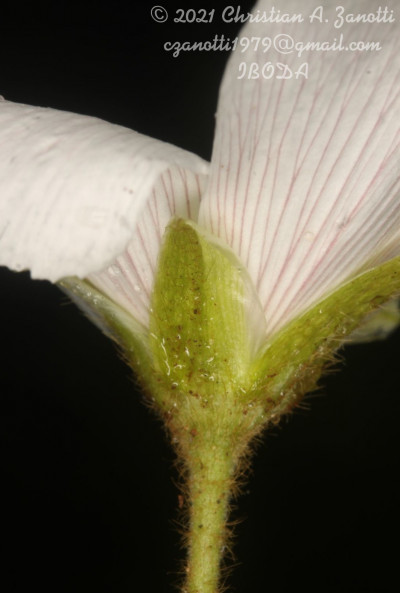 Hierba perenne, de 6-50 cm de alto, erecta o decumbente, tomentosa, con pelos simples cortos y porrecto-estrellados amarillentos, radio central de 0,6-1,5 mm de largo; tallos cilíndricos, rectos o sinuosos. Hojas con estípulas ausentes o muy reducidas, pecíolos de 0,5-5 mm de largo; lámina suborbicular, elíptica u ovada, de 0,6-7 × 0,5-4,2 cm, tomentosa a glabrescente, frecuentemente discolora, haz oscura, envés claro con venas principales prominentes, margen crenado, con un par de nectarios de 0,5-2 mm de diámetro en la unión del pecíolo y la lámina, y nectarios más pequeños o impresiones glandulares en las crenas. Flores solitarias, heterostilas; pedúnculo de 1-20 mm de largo; profilos subulados, de 0,6- 2,5 mm de largo, generalmente opuestos en la articulación; pedicelo de 3-14 mm de largo, indumento más denso que el del pedúnculo; cáliz de 10-16 mm de largo, exteriormente tomentoso, tubo calicino de 1,5-4 mm de largo, lóbulos ovado-lanceolados, ápice romo o brevemente mucronado; corola de 14-26 mm de largo, pétalos blancos, con una mácula violácea o purpúrea en la base; corona violácea o purpúrea, de 0,9-1,5 mm de largo, borde laciniado; filamentos estaminales insertos en la base del tubo floral, blancos o amarillentos, glabros, de 2,5-4 mm de largo en las flores longistilas y de 6-8 mm de largo en las brevistilas; anteras amarillas, de contorno angustiovado; ovario ovoide, de 1,7-3 mm de largo, densamente cubierto de pelos estrellados, estilos cilíndricos, blancos, a veces bifurcados, de 3-8 mm de largo en las flores longistilas y de 1-2 mm de largo en las brevistilas, estigmas penicilados, amarillos. Frutos suborbiculares, de 4,5-10 mm de diámetro, valvas ovadas con cara externa granulosa, pilosa, cara interna lustrosa, glabra. Semillas obovoides, de 2-3 × 1,1- 1,7 mm, rectas o algo curvadas, reticuladas; arilo circundante, de 2-3,5 mm de largo, lacerado.