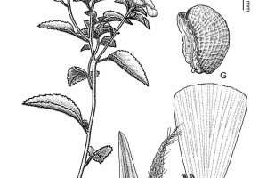 Sufrútice erecto de 10-60 cm de alto, con pelos simples; tallos estrigosos o con pelos largos, antrorsos o patentes y pelos cortos, crespos; yemas axilares seriales 2-5, ramas seriales desarrolladas. Hojas herbáceas, estípulas de 0,2-0,6 mm de largo; pecíolo semicilíndrico, de 3-13 mm de largo; nectarios 2, elípticos o circulares, con borde pubérulo, situados en la unión del pecíolo y la lámina o desplazados sobre el margen foliar; lámina ovada, elíptica u obovada, de 3-7,2 × 0,4-4,2 cm, haz con pelos de 0,2- 1 mm de largo, a veces con pelos glandulares microcapitados, envés con indumento denso y venas prominentes, margen simple o doblemente crenado-aserrado, ápice agudo u obtuso. Flores solitarias, epifilas, heterostilas; pedúnculo de 2-6 mm de largo, adnato al pecíolo, a veces la parte apical libre; pedicelo ausente; profilos 2, insertos en la base del receptáculo, subulados, de 2-5 mm de largo, opuestos; cáliz de 9-15 mm de largo, tubo de 3-5 mm de largo, cara externa con pelos cortos; lóbulos triangulares o lanceolados, ápice brevemente mucronado; corola de 15-35 mm de diámetro; pétalos obovados, de 13-50 × 8-26 mm, blancos o cremosos, con mácula amarilla en la base; filamentos estaminales subulados, blanquecinos, adnatos en la base al tubo floral, de 3,5-7 mm de largo en las flores longistilas y de 5-9 mm de largo en las brevistilas; anteras dorsifijas, amarillas, 1-1,3 mm de largo, contorno ovado, ápice obtuso; ovario cónico, de 1-1,7 mm de largo, densamente piloso; estilos cilíndricos, de 4-8 mm de largo en las flores longistilas y de 1,5-6 mm de largo en las brevistilas; estigmas penicilados, de 1,4-4 mm de largo en las flores longistilas y de 0,5-1,5 mm de largo en las brevistilas. Frutos ovoides, de 3-7 mm de largo, cara externa lisa, pilosa, cara interna glabra y lustrosa. Semillas virguliformes, de 1,5-2,3 × 0,7-1,2 mm, reticuladas, aréolas rectangulares o cuadrangulares, negruzcas a la madurez; arilo unilateral, de 1-2 mm de largo.