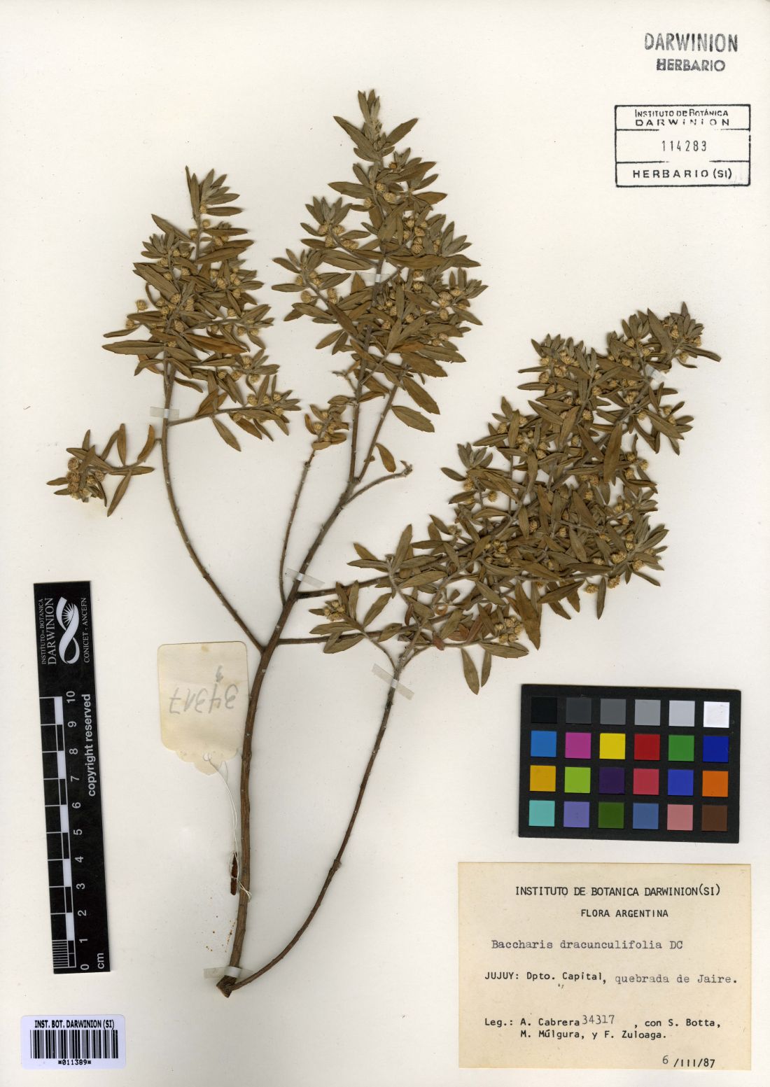 Observaciones: Nombres vulgares y usos. «Chilca», «chilca mata ojo», «suncho». Es utilizada como combustible.