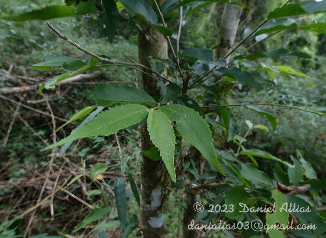 Arbustos o arbolitos pequeños, de 4-7,5 m de alto; ramas viejas grises a castañas, con lenticelas pequeñas; ramas jóvenes con indumento corto, amarillento o ferrugíneo. Hojas con pecíolos pubescentes, de (3,5-)5-7(-7,5) mm de largo; láminas obovado-oblongas a lanceolado-elípticas, de (6,5)9- 9,5(-11) × 3,5-5(-8) cm, cuneadas a redondeadas en la base, largamente acuminadas en el ápice, los márgenes crenuladoaserrados, verdosas, con pilosidad amarillenta en el envés; estípulas subuladas, de 2-3 mm de largo, pilosas. Panículas terminales, piramidales, tomentosas, de 6,5-9(-10) cm de largo, las ramas inferiores de 3-5 cm de largo. Flores pequeñas, pilosas; pedicelos de 1-2(-3,5) mm de largo, con 2 brácteas setáceas; sépalos 3, ovados, de 1,5-2(-2,8) × 1,5-2 mm, acuminados en el ápice, tomentosos en el dorso; pétalos 3, amarillentos o blanquecinos; estambres numerosos, más largos que los pétalos, filamentos con pelos cortos en la base; ovario globoso u ovoide, ca. 2 mm de alto, glabro; estilo corto; estigma truncado, brevemente 3-lobado. Bayas subglobosas, de 4-5 mm de diámetro, rojizas. Semillas pocas, ovoideas, longitudinalmente estriadas.