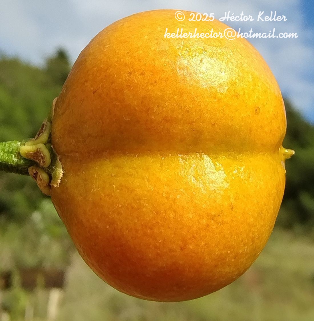 Árboles pequeños, glabrescentes, con entrenudos de 3- 10 cm de largo. Hojas con estípulas triangulares, de 0,8 -1,5 mm de largo; pecíolos de 1-1,5 cm de largo, canaliculados en la cara adaxial, pubérulos, eglandulares; láminas lanceoladas, de 4-15 × 3-4,5 cm, de base aguda, ápice acuminado, glabrescentes en ambas caras, con 6-8 glándulas hacia el margen. Inflorescencias en seudoracimos, simples, erectos; brácteas de 1-1,5 mm de largo; pedúnculos florales de 1-1,5 mm de largo, pubérulos; bractéolas de 1,2-1,5 mm de largo, glabrescentes en la cara abaxial; pedicelos de 4-8 mm de largo, engrosados, pubérulos; sépalos ovados a linear-oblongos, de 2-4 mm de largo, glabrescentes en la cara abaxial, glándulas oblongo-ovadas, de 1,5-2 mm de largo; pétalos de 6,5-8 × 5,5- 6,5 mm, amarillos, planos a cóncavos, margen crespo a fimbriado, glabros en la cara abaxial, los 4 anteriores con limbo suborbicular, el posterior erecto, algo más angosto y con uña más gruesa que los restantes; androceo con filamentos connados en la base, con parte libre dentiformes, 2,5-3,5 mm de largo, glabros, anteras suborbiculares, de 0,8- 1 mm de largo, todas fértiles, glabras; ovario 2 locular, de 1,8- 2 mm de largo, escasamente piloso, estilos 2, de 1,5-2,1 mm de largo, rectos y libres, capitados en el ápice, escasamente pilosos. Fruto drupáceo, rojizo, globoso a anchamente ovoide, 2 locular, de 13-15 × 10-12 mm.