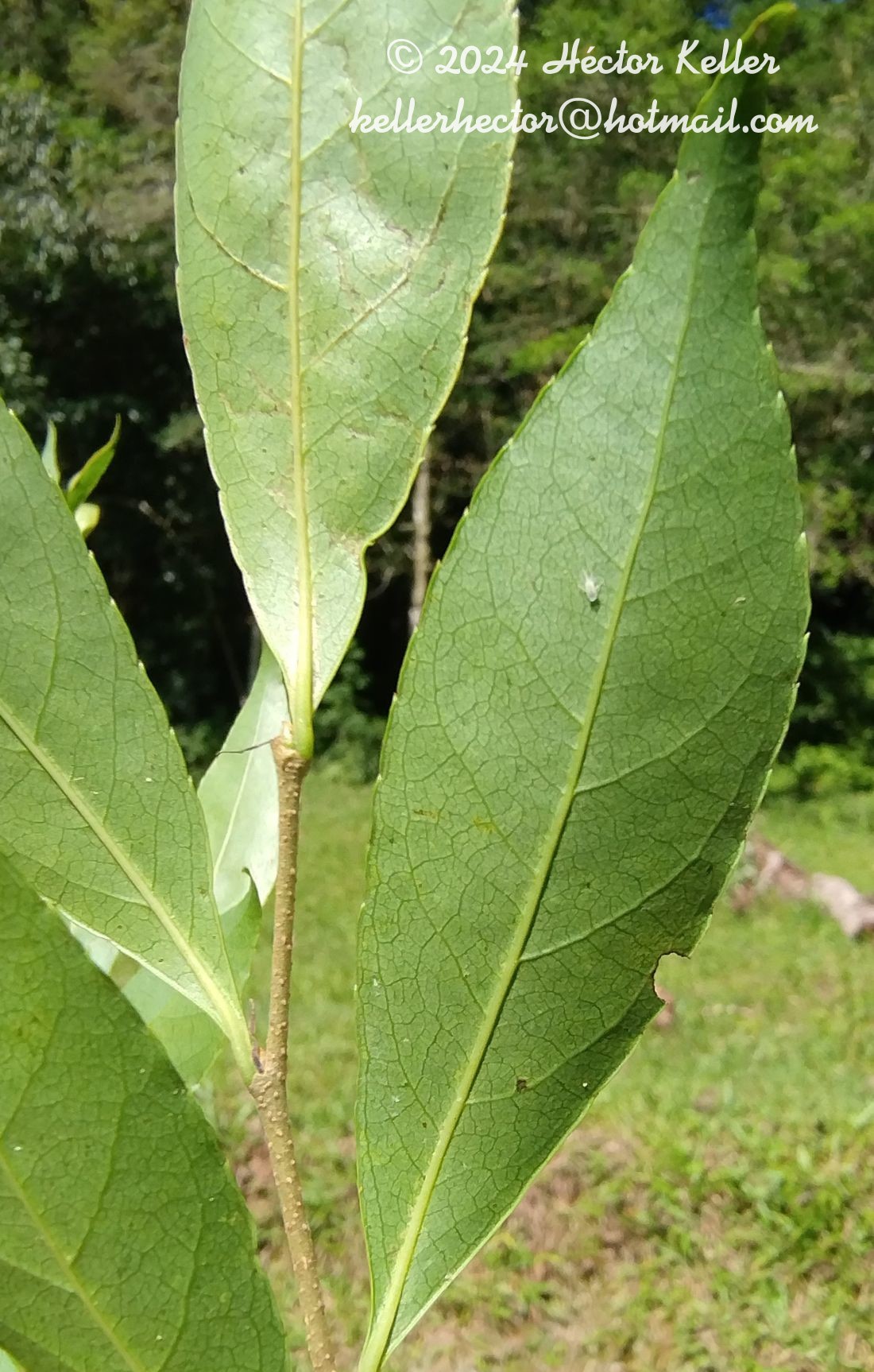 Arbustos o arbolitos, de 3-6 m de alto (ocasionalmente hasta de 15 m), con tronco hasta de 40 cm de diámetro; corteza grisácea o castaña; ramas jóvenes pubescentes, luego glabras y con corteza castaña y lenticelas esparcidas. Hojas decíduas; pecíolos de 2-4,8(- 9,7) mm de largo; láminas lanceolado-elípticas a elípticas u ovadoelípticas, de (1-)3-8,5(-12) × 1,4-4,4(-6) mm, de base ligeramente asimétrica, ápice largamente acuminado, los márgenes crenados a aserrados, membranáceas a cartáceas o subcoriáceas a la madurez, glabras, ocasionalmente pubescentes en el envés; estípulas linearsubuladas, de 3-6 mm de largo, glabras, caducas. Inflorescencias en fasciculos umbeliformes 7-10(-30)-floros; pedúnculos cortos; brácteas ovadas, de 1,1-1,4 mm de largo, glabras a pubescentes en el dorso. Sépalos 5, lanceolado-oblongos, de 4,3-4,6 × 2 mm, blanquecinos, cremosos o verdosos, tomentosos en ambas superficies, fragrantes; estambres 10, 2-seriados, filamentos filiformes, largamente pilosos a glabros, ca. 3 mm de largo, anteras elipsoides, ca. 0,4 mm de largo, sin glándulas; ovario ovoide; estilo ca. 3 mm de largo, craso, laxa a densamente piloso; estigma capitado. Cápsulas globosas, de 6-5-9,5(-10) mm de diámetro, rojizas a anaranjadas, glabras a laxamente pilosas; pericarpio delgado. Semillas pocas a numerosas, ovoides, de 3,8-5,1 mm de largo, comprimidas.