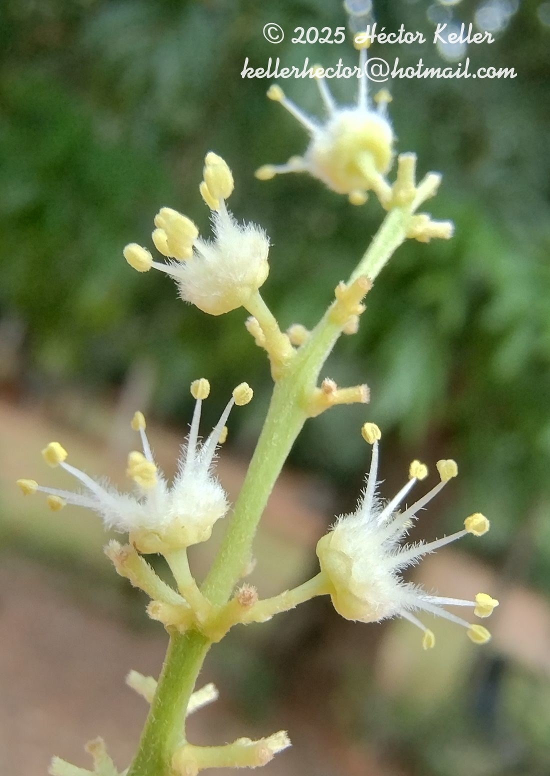 Árboles o arbustos, semideciduos, de 2-25 m de alto; tronco hasta de 0,76 m de diámetro, corteza agrietada; ramas jóvenes con indumento laxo de tricomas adpresos, amarillentos, luego glabras; ramas floríferas de 3-4 mm de diámetro. Hojas con pecíolo semiterete, de 1,5-7 cm de largo, glabriúsculo; lámina con 6-12(-14) folíolos; raquis de 3,5-14,5 cm de largo, 2-canaliculado, glabro o pubérulo; peciólulo de 0,5-3(-6) mm de largo; folíolos elíptico-, obovado- u oblongo-angostos, 3-14,5 × 1,2-4,5 cm, cartáceos, discoloros; base cuneada, ápice redondeado o retuso, margen a veces revoluto; epifilo con vena media impresa, glabro, hipofilo con venación muy marcada, glabro o glabriúsculo, con domacios urceolados. Inflorescencias en tirsos con ejes glabros o pubérulos; pedúnculo de 0,5-6,5 cm de largo; raquis de 1,5-11,5 cm de largo; pedúnculo de la inflorescencia parcial de 2-5,5 mm de largo; pedicelo de 1,5-3,5 mm de largo, articulado por encima de la base o aproximadamente en la mitad; brácteas de 1,5(-3) mm de largo, pubescentes. Flores de 3,5-5,45 mm de largo; sépalos de 1-1,6 mm de largo, glabros o pubérulos en la cara externa, tricomas adpresos en la cara interna, ciliados; pétalos de 1,3-1,5 mm de largo, con frecuencia la escama sobrepasa en longitud al resto del pétalo; disco nectarífero glabro; estambres de la flor estaminada de 4-4,75 mm de largo, en la flor pistilada de 1,75-2,2 mm de largo; pistilodio velloso; gineceo de 2,5-3 mm de largo, ovario con pubescencia densa, tricomas adpresos, amarillentos, estilo pubérulo. Frutos cápsulas de 1,6 × 1,85 cm, coriáceas, epicarpo rosado-verdoso, verrucoso, indumento denso de tricomas breves, adpresos, amarillentos; endocarpo ferrugíneo-velloso. Semillas de 9-14 × 6,5-8,5 mm, tegumento castaño-oscuro, arilo rosado-blanquecino, cubre aproximadamente 3/4 partes de la semilla.