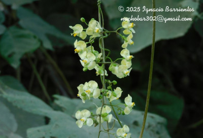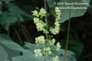 Trepadoras semileñosas, de 5-6 m de alto; glabras, raro pubérulas con indumento de tricomas brevísimos, castañoamarillentos, curvos; tallos delgados, con 5-6 costillas inconspicuas, castaño-claros, a veces fistulosos; cámbium único. Hojas con estípulas triangulares, de 0,5-1 mm de largo, glabras, persistentes; pecíolo terete, de 2-3,6 cm de largo, canaliculado, glabro; lámina 2-yugada, 3-foliolado el par basal; raquis primario y ráquises secundarios 2-canaliculados; con peciólulo o subsésiles; folíolo terminal ovado-lanceolado u -angosto, los laterales elípticos, ovados u ovado-anchos, de 2-9,5 × 1,4-4,5 cm, cartáceos, discoloros; base decurrente en folíolo y foliólulos terminales, obtusa o cuneada en los demás, ápice atenuado-mucronado, margen entero o subentero con 1-3 dientes obtusos; caras adaxial y abaxial glabras. Inflorescencias en tirsos generalmente más largos que las hojas; ejes glabros, raro pubérulos con indumento de tricomas castaño-amarillentos; pedúnculo del cincino de 3-15 mm de largo; pedicelo de 4-5(-7) mm de largo, en el fruto de 6-10 mm de largo, ambos articulados en 1/3 basal; brácteas de 1-2 mm de largo, glabras. Flores de 5-7 mm de largo; sépalos externos de 3,5-4 mm de largo, glabros o pubérulos en la cara externa, los internos ca. 4,75 mm de largo, velutinos en la cara externa con algunos tricomas glandulares en los márgenes; pétalos de 5-7 mm de largo, densamente glandulosos en la cara interna, escama con cresta entera o emarginada en los pétalos posteriores; lobos nectaríferos posteriores ovoide-obtusos, los anteriores ovoide-agudos o de contorno elíptico, soldados a los posteriores, glabros; androginóforo glabro; estambres de la flor estaminada de 4-5 mm de largo, filamentos pubérulos, tricomas breves, dispersos, en la flor pistilada estambres de 2,5-3 mm de largo, filamentos pubérulos, anteras pilosas; pistilodio con tricomas glandulares; gineceo de 4-5 mm de largo, ovario 3-gono-ovado o -oblongo, pubérulo a pubescente, estilo de igual o menor longitud que las ramas del estigma. Frutos esquizocarpos ovado-cordados, de 3-4 × 2,6-2,8 cm, a nivel de los lóculos de 1,6-1,8 cm de ancho, cartáceos, porción seminífera del mericarpo complanada, cresta dorsal notable, ca. 2 mm de ancho, sin constricción debajo de la misma; epicarpo ocráceo, con venación marcada en la porción seminífera, glabro o glabriúsculo, endocarpo glabro. Semillas lenticulares, de 5-7 × 5-5,5 mm, insertas en la base de los lóculos; embrión con el cotiledón externo curvo y el interno 2-plicado.