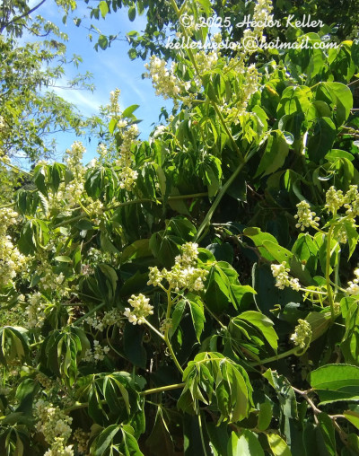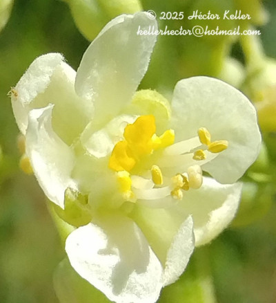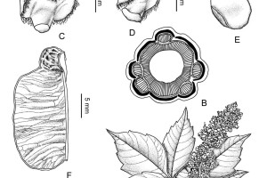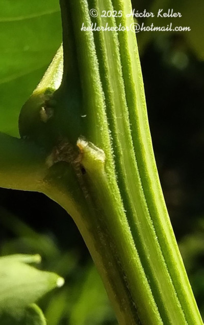 Trepadoras hasta de 10 m de alto, glabras, o incanopubescentes con indumento denso de tricomas simples, breves y curvos; tallos con 8 costillas poco notables, pubérulos o pubescentes cuando joven, luego glabros o pubescentes; 3-5 cámbiumes supernumerarios, si más de 3 se disponen de a pares. Hojas con estípulas triangulares, de 1-1,75 mm de largo, sólo con tricomas glandulares en el margen o pubérulas a pubescentes, persistentes; pecíolo de 2,8-6 cm de largo, 2-canaliculado o sólo con costillas, glabro o pubescente; lámina 2-yugada, par basal con 3 foliólulos; raquis primario y secundarios 2-canaliculados, glabros o pubescentes; peciólulo del folíolo terminal ca. 3,5 mm de largo, breve o nulo en los demás; folíolo terminal obovado- u ovado-romboidal, los demás ovados u elípticos, de 4,5-10,5 × 2-6 cm, cartáceos; base decurrente en el folíolo terminal, en los demás cuneada, redondeada o decurrente ápice atenuado, mucronado, margen dentado-serrado; caras adaxial y abaxial glabras, a veces axilas barbadas o con cara adaxial con tricomas simples y glandulares sobre la vena media y cara abaxial pubescente, axilas barbadas. Inflorescencias en tirsos con indumento de tricomas breves en los ejes, incano-pubescentes; pedúnculo del cincino de 2,5-5,25 mm de largo, pedicelo del fruto ca. 4 mm de largo, articulado ca. de la mitad o en 1/4 basal; brácteas ca. 1,6 mm de largo, pubescentes. Flores de 4,75-6,5 mm de largo; sépalos externos de 2,6-3,5 mm de largo, pubérulos en la cara externa, los internos de 3,75-4,5 mm de largo, velutinos en la cara externa; pétalos de 4-5 mm de largo, glandulosos en ambas caras, escama con cresta emarginada en los pétalos posteriores; lobos nectaríferos ovoides, los posteriores obtusos, los anteriores agudos, pubérulos y con ápice deflexo; androginóforo glabro; estambres en flor estaminada de 3-6,25 mm de largo, filamentos pubérulos en la base o pubescentes; en la flor pistilada de 2,8- 3,5 mm de largo; pistilodio con tricomas glandulares, pubérulo o velloso; gineceo con ovario pubescente, estilo 2-3 veces más largo que ramas del estigma. Frutos esquizocarpos ovoideocordados, de 2,5-3 × 2,3-2,4 cm, a nivel de los lóculos de 0,8- 1,2 cm de ancho, cartáceos, porción seminífera del mericarpo inflado-globosa con venación notable y constricción debajo de la misma; epicarpo glabro, sólo pubérulo en la porción seminífera y en inmediaciones del eje del fruto, endocarpo lanoso, amarillento. Semillas subtransverso-obovoides, de 0,4-0,5 cm de diámetro, insertas poco por debajo de la mitad de los lóculos; embrión con el cotiledón externo curvo y el interno 2-plicado.