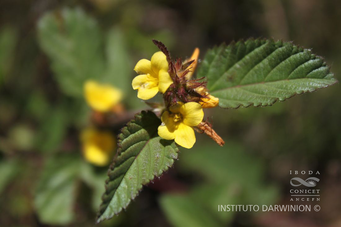 Subarbustos procumbentes, ramas de 20-40 cm de largo. Pecíolo de 5-7 (15) mm, lámina suborbicular u oval, hacia el ápice ovada u oblonga, obtusa, base redondeada, de ca. 2 (4,5) × 1,5 (3,5) cm, aserrada. Cimas axilares y terminales, paucifloras, últimas ramificaciones bifloras, pedicelos de 5-10 mm. Cáliz de 4-5 mm, setuloso, pelos capitados hacia el ápice, pétalos amarillos, de 8-11 × 3-5 mm, fl. longistilas: androceo de 4 mm, pistilo de 6 mm, fl. brevistilas: androceo de 7 mm, pistilo de 4 mm. Fruto esférico, de 4-5 mm, estipitado, loculicida, finalmente septicida, disgregándose a la madurez. Variedad que se diferencia por poseer tallos con setas dispersas y una fila de pelos cortos, raro pelos cortos en toda la superficie; hojas con ambas caras setulosas, a veces también pelos glandulares capitados y escasos pelos cortos simples.