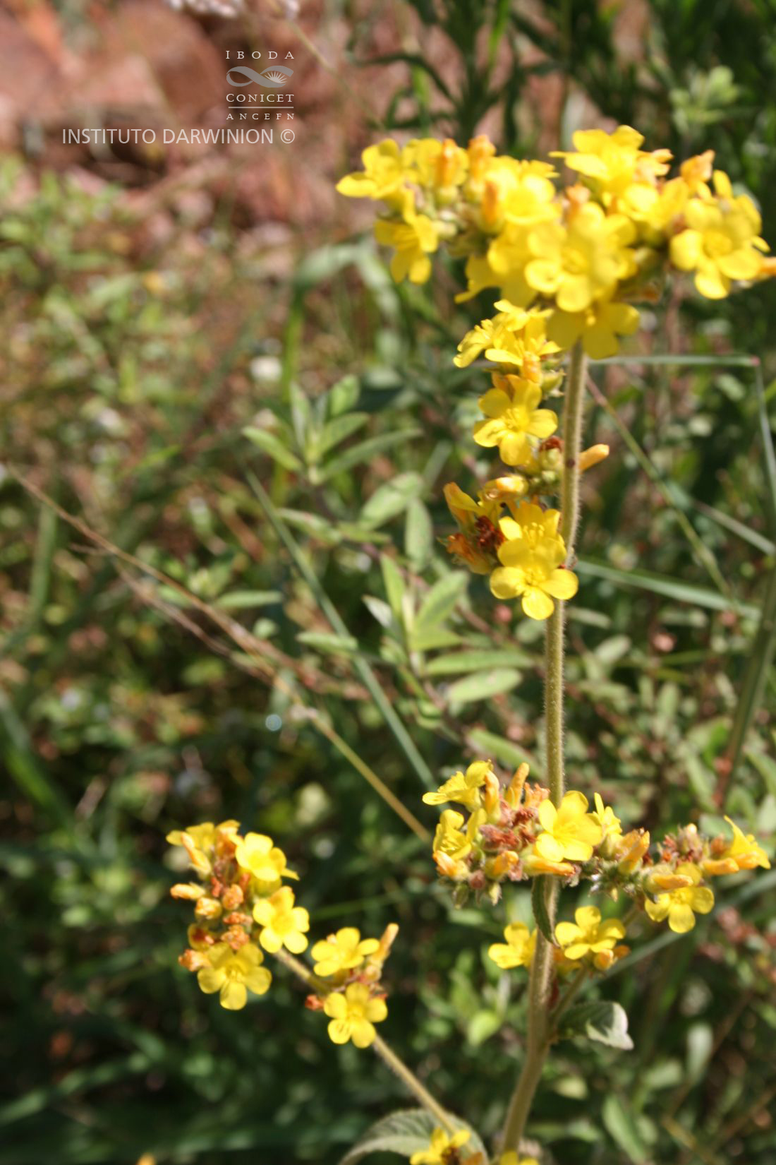 Subarbustos de 0,50-1 (2) m de altura, erectos o semierectos, tallos fistulosos, tomentosos, indumento amarillento o ferrugíneo. Hojas ovado-lanceoladas, ovadas u oblongo-lanceoladas, agudas u obtusas, base redondeada o cordada, margen profundamente aserrado, de 6 (10) × 3 (6) cm, epifilo setuloso, pelos antrorsos en densidad variable, hipofilo desde tomentoso a levemente pubescente, venas setulosas y entre ellas pelos simples, estrellados y a veces glandulares. Inflorescencia terminal, paniculiforme, desnuda, típicamente densa, hasta 60 cm de long.; sépalos de 5-7 mm, dientes largamente acuminados; pétalos amarillo-brillantes, de 7-10 × 3-4 mm, fl. longistilas: androceo de 4-5 mm, pistilo de 8 mm, fl. brevistila: estambres de 8 mm, pistilo de 5 mm. Fruto subgloboso, brevemente estipitado, de 4-5 mm de diámetro, loculicida, tardíamente septicida.