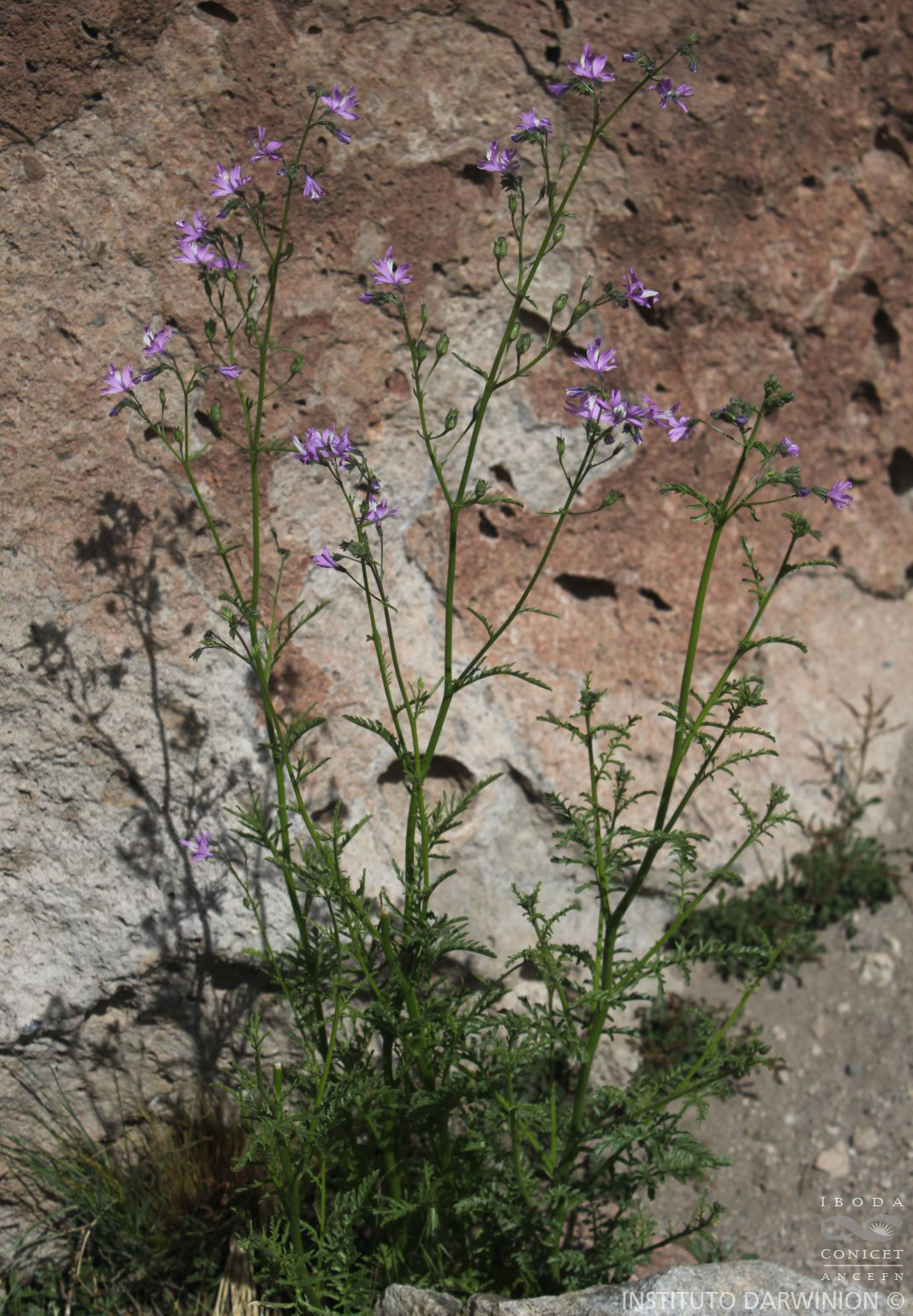 Hierbas anuales o bienales, de 30-55 cm de alto. Hojas hasta de 9 cm, pubescentes; cáliz de 6-8 mm; corola de 22-30 mm, rosado-lilacina, tubo breve, ca. 1,5 veces más largo que el cáliz (de 8-11 × 2-2,5 mm), limbo amplio, con un segmento anterior de 17-20 × 8-10 mm, ovado, atenuado hacia el ápice e internamente de color anaranjado, dos segmentos laterales, ca. 12 mm, 2-partidos, con las divisiones enteras o divididas y 2 segmentos posteriores soldados y divididos en 3 lóbulos (los laterales de 8 × 2 mm, enteros o 2-lobados y el central de 11-13 mm, obcordado, pubescente en la cara interna y rematando en dos lacinias algo encorvadas); ovario glabro, estilo corto de 9-11 mm, incluido.