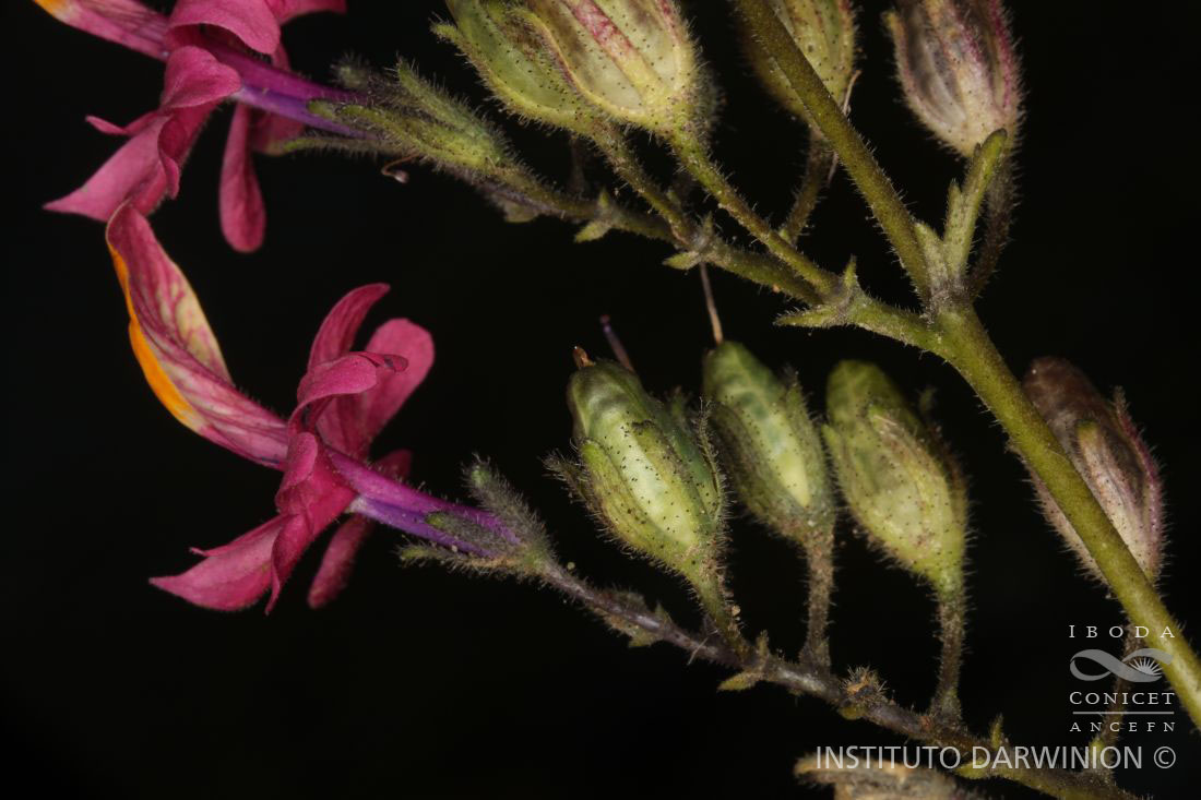 Hierbas anuales o bienales, de 30-55 cm de alto. Hojas hasta de 9 cm, pubescentes; cáliz de 6-8 mm; corola de 22-30 mm, rosado-lilacina, tubo breve, ca. 1,5 veces más largo que el cáliz (de 8-11 × 2-2,5 mm), limbo amplio, con un segmento anterior de 17-20 × 8-10 mm, ovado, atenuado hacia el ápice e internamente de color anaranjado, dos segmentos laterales, ca. 12 mm, 2-partidos, con las divisiones enteras o divididas y 2 segmentos posteriores soldados y divididos en 3 lóbulos (los laterales de 8 × 2 mm, enteros o 2-lobados y el central de 11-13 mm, obcordado, pubescente en la cara interna y rematando en dos lacinias algo encorvadas); ovario glabro, estilo corto de 9-11 mm, incluido.