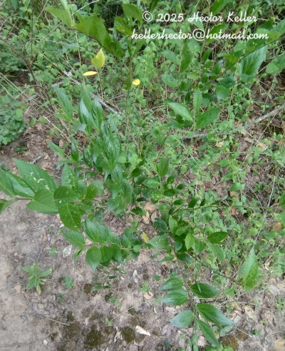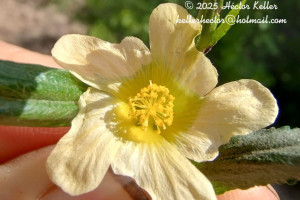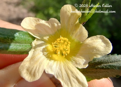 Arbusto de 0,50-1,50 m de altura. Tallo glabro o con pelos estrellados diminutos en las partes jóvenes. Hojas dísticas. Estípulas subfalcadas, agudas, dimorfas, de 5-12 mm de largo, la mayor de 1-2 mm de ancho, la menor linear, caras glabras, margen ciliado. Pecíolo de 4-6 mm de largo, con pelos estrellados diminutos. Lámina elíptico-lanceolada, base redondeada, ápice agudo, 3-12 × 1-5 cm, margen crenado-aserrado, ambas caras glabras, dientes del margen terminados en un pelo simple, breve. Flores 1-2 axilares, con ramitas accesorias con 1-2 flores por axila; tallo de las ramitas con la cara superior plana. Cáliz de 6-7 mm de largo, lóbulos triangulares, 4-5 × 4 mm, glabro margen de los lóbulos ciliados, a veces también pelos simples sobre los nervios. Corola amarilla; pétalos de 8-10 × 6-7 mm, asimétricos, 2-lobados, glabros, uña pilosa. Tubo estaminal de 3 mm de largo, glabro, sólo pelos glandulares punctiformes. Mericarpos 7-10, glabros, 3 × 2,5 mm y aristas de 0,5-1 mm de largo, caras reticuladas. Semilla glabra, excepto algunos pelos en el hilo.