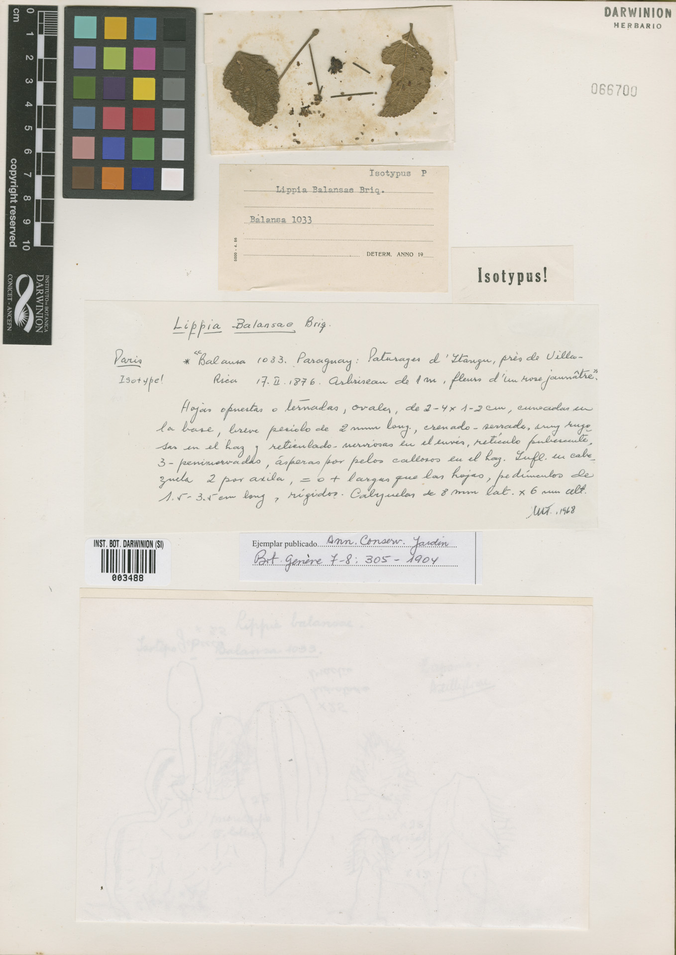 Observaciones: Phenology. Lippia balansae flowers and fruits from