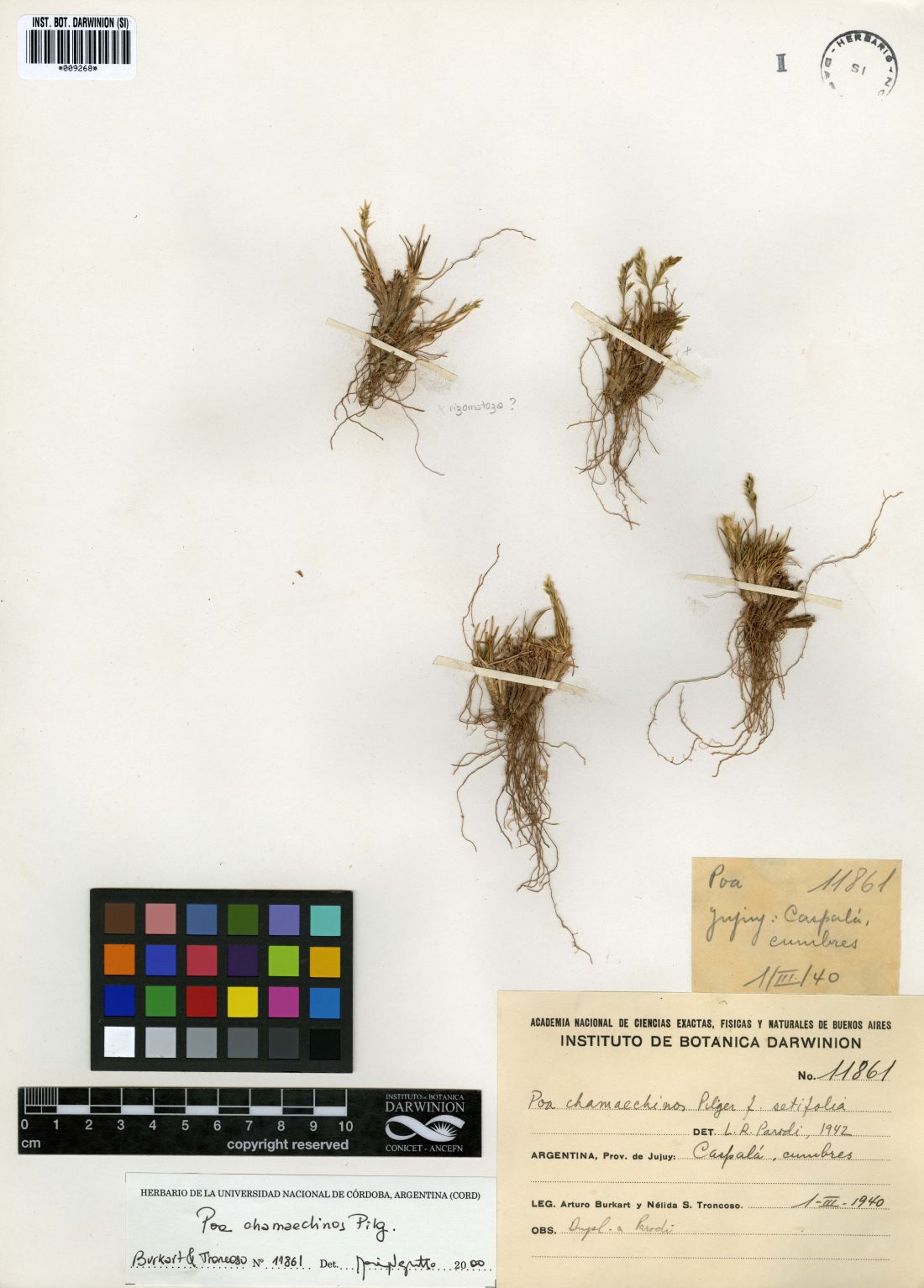 Material Tipo: Perú. “In andibus elevatis supra Lima ad 4500 m s.m.” Mar 1904, A. Weberbauer 5118 (lectotipo, USM!, designado por A. M. Anton & M. A. Negritto, Willdenowia 27: 237. 1997; isolectotipos, BAA-Col. Typus 2510!, US-89685!, fragmento ex B).