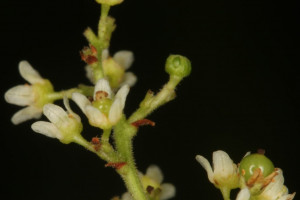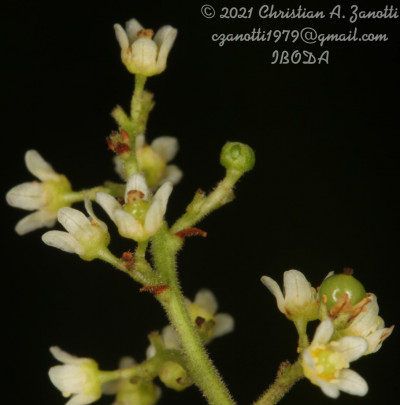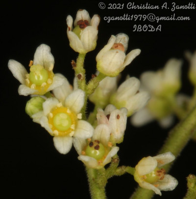Árboles ramosos, hasta de 15 m de alto, diclino-monoicos; corteza gris oscura, fisurada, agrietada y escamosa con el paso de los años; ramas inermes, pubescentes a tomentosas cuando jóvenes, glabras a la madurez. Hojas imparipinnadas; pecíolo de 1-4 cm de largo, no alado a subalado; raquis alado, en ocasiones subalado; folíolos en 2-10 pares, opuestos, sésiles; lámina elíptica a obovada, en ocasiones oblonga o lanceolada, de 1,5-6 × 0,5-3 cm, ápice agudo, acuminado o mucronulado, base cuneada a obtusa, margen revoluto, serrado, en ocasiones entero, glabra a subglabra en la cara adaxial, tomentosa en la cara abaxial con tricomas ocráceos, en ocasiones con tricomas densos concentrados sólo en las nervaduras, cartácea a subcoriácea, venación conspicua. Inflorescencias en panículas multifloras y laxas, raro en pseudoracimos, hasta de 15 cm de largo; raquis más o menos tomentoso y brácteas isomorfas. Flores 5-meras; pedicelos de 1-2 mm de largo, notoriamente articulados; cáliz con lóbulos ca. 1 mm de largo, pubérulos; pétalos oblongos, de 1,3-2,5 mm de largo, glabros o pubérulos, blancos o blancoamarillentos. Flores pistiladas con gineceo ca. 1 mm de largo. Drupa de 4-6 mm de diámetro, glabra, rojiza a purpúrea.