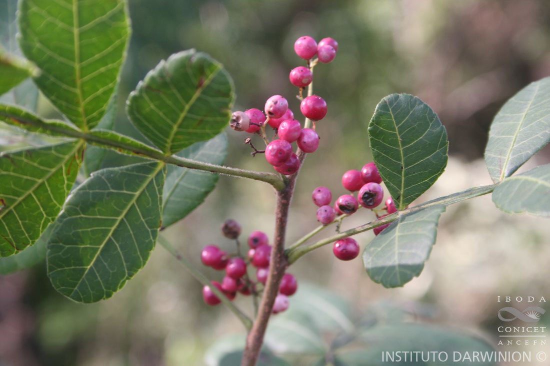 Observaciones: Nombres vernáculos y usos. “Aguaribái negro”, “aguará-ibá”, “aguará-mí-ibá”, “aroeira colorada”, “aroeira negra”, “cichita”, “cichita hu”, “corazón de bugre”,“yryvadjá”. Cantero et al. (2019) reportan que la corteza es empleada como colorante.