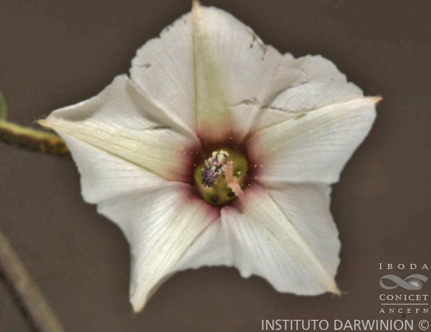 Plantas volubles, decumbentes o sólo volubles en los ápices; raíz vertical gruesa, axonomorfa; ramitas pubescentes a tomentosas, con pelos simples adpresos, seríceas en los extremos apicales. Hojas enteras o irregularmente lobuladas o crenadas, ovado-lanceoladas hasta lineares, ovadas o elípticas, a menudo 4-5 veces más largas que anchas, de 1-10 × 0,3-6 cm, hastadas o sagitadas, base cordada o truncada, aurículas divergentes, angulosas o 2-3 dentadas, ápice obtuso a truncado, rara vez agudo, a veces ligeramente emarginado, brevemente mucronado, laxamente pubescentes a tomentosas en la haz y el envés, con pelos cortos y adpresos, a veces seríceos; nervios prominentes en el envés. Inflorescencias en cimas pedunculadas 2-5-floras o flores solitarias; brácteas y bractéolas florales lanceoladas, pubescentes, de 1-3 mm de largo; sépalos externos elípticos u ovados, de 5-8 mm de largo, de ápice obtuso, mucronados, laxa a densamente pubescentes, ciliados, a veces seríceos; sépalos internos anchamente elípticos, suborbiculares u obovados, obtusos a agudos, mucronados, pubescentes especialmente en la línea media, bordes hialinos; corola infundibuliforme de 1-1,6 cm de largo, blanca o blanco-rosada, limbo netamente 5-lobulado, lóbulos de 2-3 mm de largo; áreas mesopétalas laxamente pubescentes; androceo con estambres ca. 7,5 mm de largo; gineceo con ovario glabro y estilo de 4-8 mm de largo. Cápsulas brevemente apiculadas, de 5-7 mm de diámetro. Semillas negras, ca. 4 × 2,5 mm, lisas o levemente tuberculadas en los bordes.