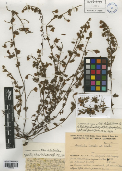 Material Tipo: Uruguay. Montevideo ["Cette plante croît naturellement à Monte-video, & se trouve dans l'Herbier de Commerson. (v. s. In Herb. D. Juss.)."], Nov 1767, P. Commerson s.n. [Herb. A. L. de Jussieu N° 6847+A] (MPU 012306 p.p., P 00666139, P 00666140, P 00666141, P 03560956 p.p.; probable ejemplar tipo, P 03560954 p.p.).