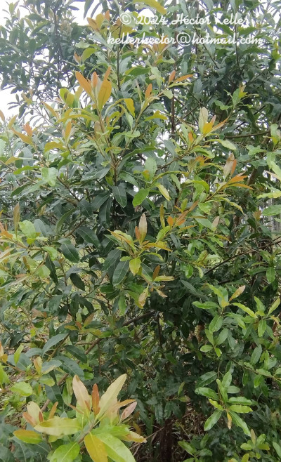 Árboles hasta de 8(-15) m de alto; ramas pardo-grisáceas, glabras o escasamente pubescentes. Hojas simples, muy raramente pinnadas con 2-3 folíolos; pecíolos de 0,3-1,5 cm de largo, en ocasiones subsésiles; lámina oblonga u obovada, de 2-8 × 0,7-3 cm, ápice agudo, emarginado o mucronado, raro truncado, base decurrente, margen revoluto, entero u ondulado, textura coriácea a subcoriacea, glabra en ambas caras. Inflorescencias de 1,5-5(-7) cm de largo, terminales. Flores con pedicelos de 1-2 mm de largo. Flores estaminadas con lóbulos del cáliz triangulares, de 0,5-0,7 mm de largo, glabros; corola con pétalos elípticos u ovados, de 1,3-1,4 mm de largo; anteras elipsoideas. Flores pistiladas con ovario globoso hasta de 1,5 mm de largo. Drupa de 0,4-0,7 cm de diámetro; pedicelo hasta de 4 mm de largo.