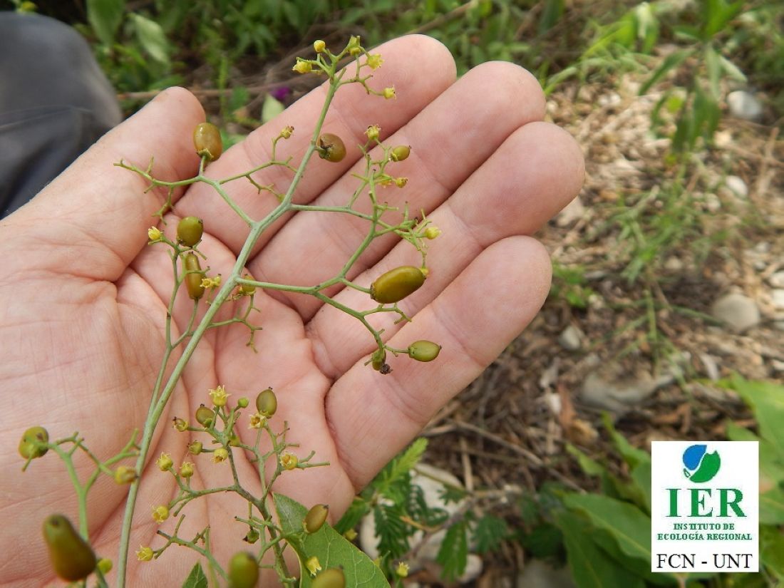 Árboles diclino-monoicos, hasta de 6(-10) m de alto; ramas flexuosas. Hojas pinnadas; pecíolos de 3-7 cm de largo; 3-5 folíolos subsésiles, a excepción del terminal con peciólulo de 0,9-3,5 cm de largo; lámina de losfolíolos angostamente elíptica a ovada, de 5-13,5 × 2-5,2 cm, ápice acuminado, base cuneada, margen entero o algo aserrado, más frecuentemente hacia el ápice, textura cartácea, glabra o con fina pubescencia en la porción basal y pilosidad axilar en la cara abaxial, especialmente en hojas nuevas. Inflorescencias en panículas, hasta de 15 cm de largo, terminales. Flores 5-meras; pedicelos de 1,5-2 mm de largo; cáliz con dientes hasta de 1,2 mm de largo; corola con pétalos ovados, de 2,3-3,2 mm de largo blanco-amarillentos o amarillo-verdosos. Flores pistiladas con ovario subgloboso y estigmas capitados. Drupa de 0,7-0,9 × 3-4,5 mm, verde anaranjada a rojiza.
