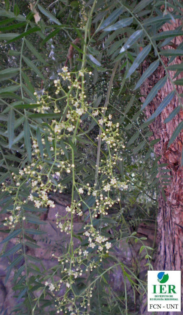 Observaciones: “Aguará-ibá-guazú”, “aguaribay”, “árbol de pimienta”, “bálsamo”, “curunday”, “gualeguay”, “molle”, “molle blanco”, “molle castilla”, “pimentero”, “pimiento del diablo”, “terebinto”. Especie ampliamente cultivada en centros urbanos y espacios abiertos como ornamental y para sombra, debido a su rusticidad y rápido crecimiento. Los frutos se consumen como sucedáneo de la pimienta y también se emplean