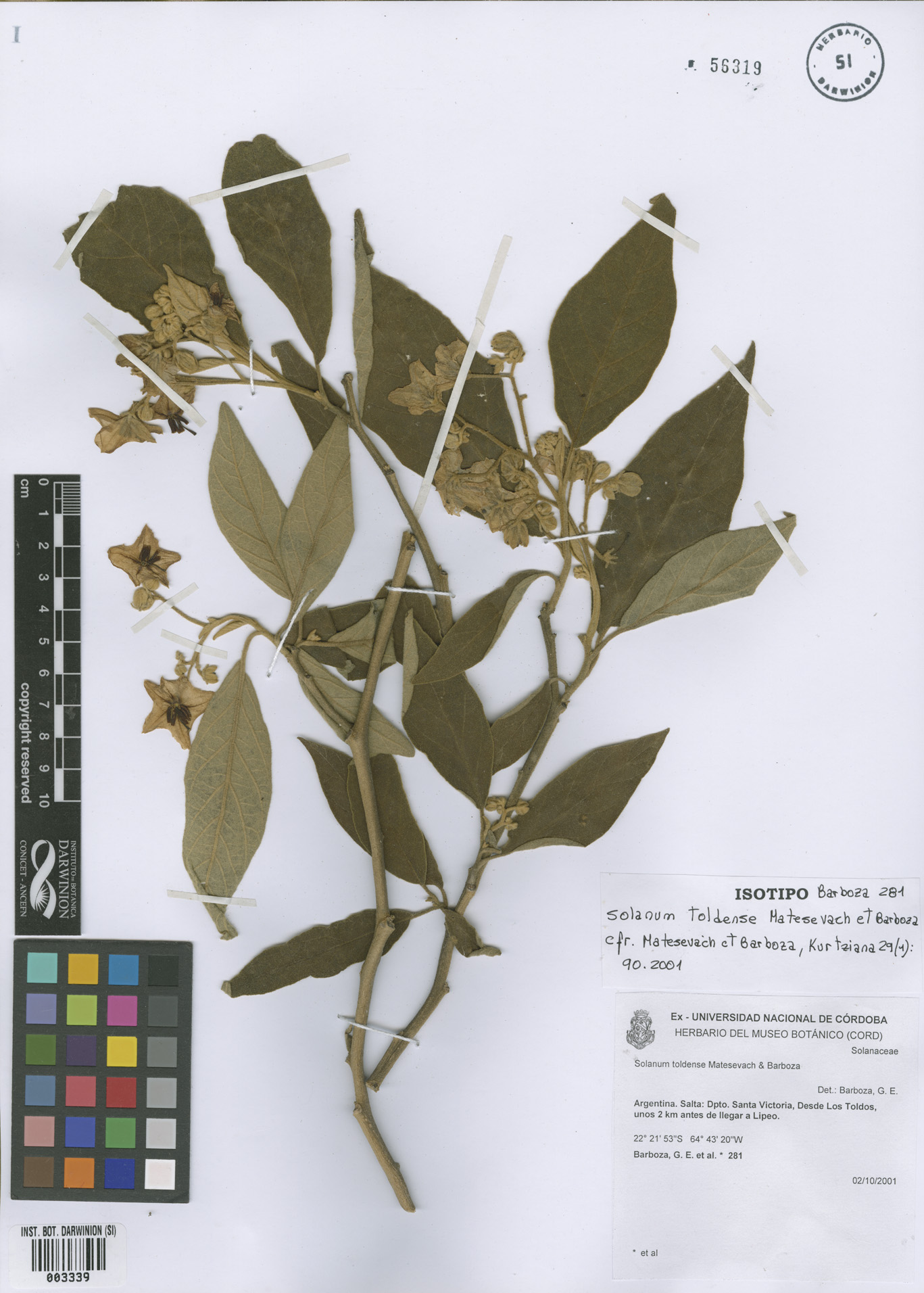 64º43’20’’W, G. E. Barboza et al. 281 (holotipo, CORD