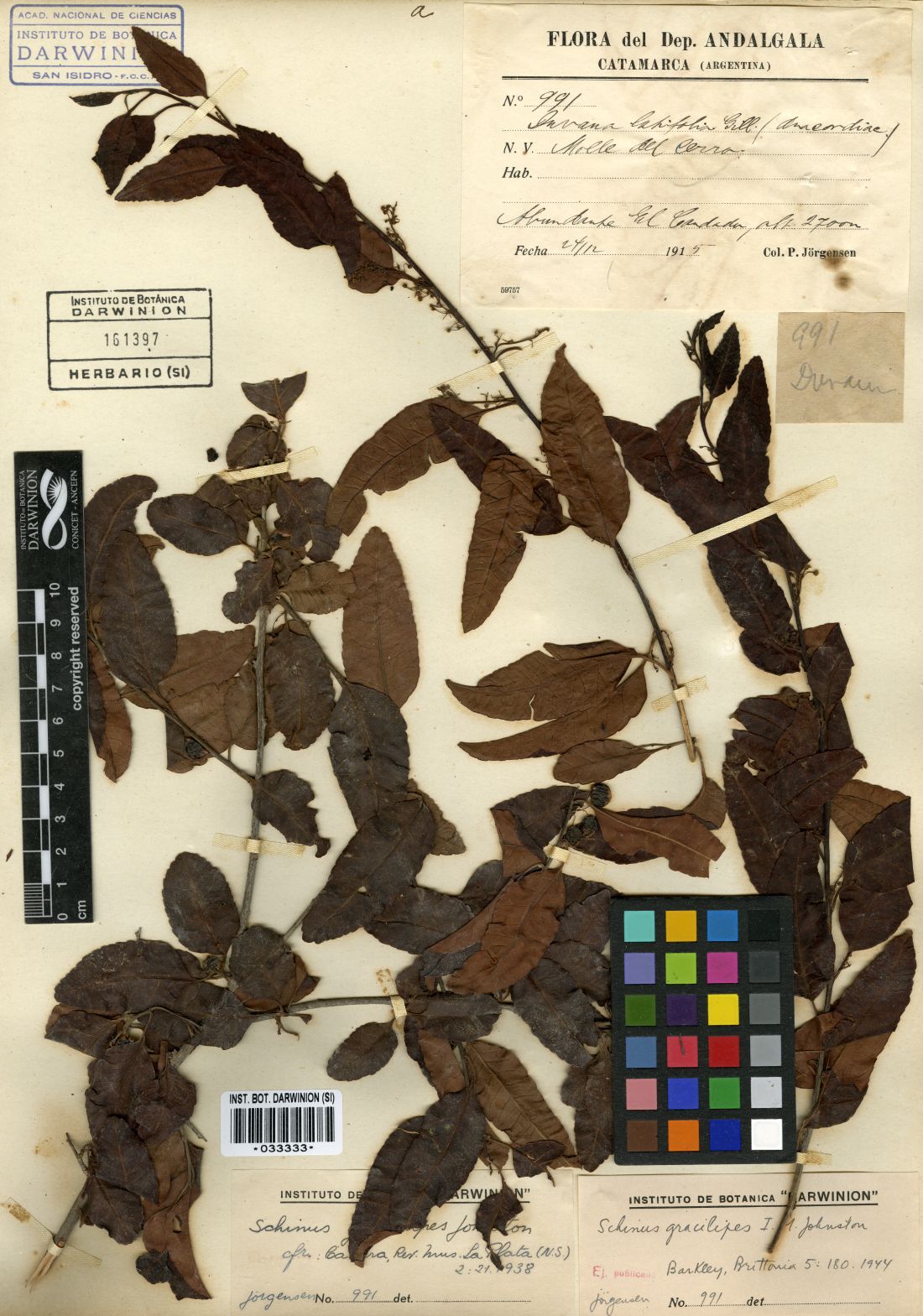 Observaciones: Nombres vulgares: “Molle”, “molle del cerro”, “molle de la quebrada”, “horcomolle”, “molle trepador”.