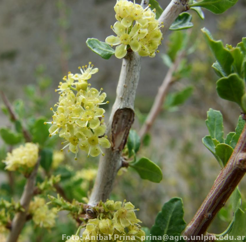 Observaciones: Nombres vernáculos y usos. “Chacay”, “molle”, “muchí”. Philippi [enAnales Univ. Chile 23(4): 451. 1863] refiere que los frutos eran consumidos por los Patagones, quienes daban a esta planta el nombre de “muchí”. Cantero et al. (2019) señalan que las partes aéreas de la planta sirven como forraje y se utilizan como medicina