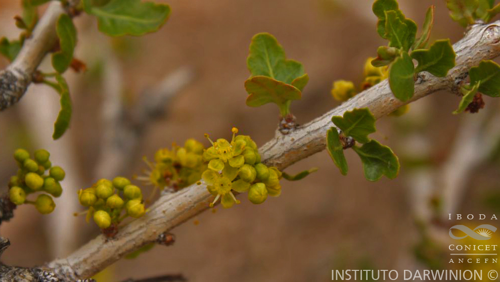 Observaciones: Nombres vernáculos y usos. “Chacay”, “molle”, “muchí”. Philippi [enAnales Univ. Chile 23(4): 451. 1863] refiere que los frutos eran consumidos por los Patagones, quienes daban a esta planta el nombre de “muchí”. Cantero et al. (2019) señalan que las partes aéreas de la planta sirven como forraje y se utilizan como medicina