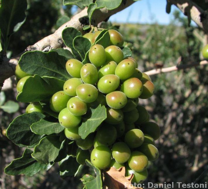 Observaciones: Nombres vernáculos y usos. “Chacay”, “molle”, “muchí”. Philippi [enAnales Univ. Chile 23(4): 451. 1863] refiere que los frutos eran consumidos por los Patagones, quienes daban a esta planta el nombre de “muchí”. Cantero et al. (2019) señalan que las partes aéreas de la planta sirven como forraje y se utilizan como medicina