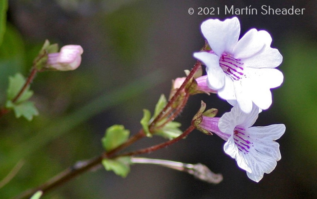 Hierbas perennes, rastreras, de 1-11,2 cm de alto, rizomatosas. Tallos glabros o pubescentes, entrenudos de 2,2-9,5 mm de largo. Hojas opuesto-decusadas, con pecíolo glabrescente o piloso, de 1,6-45 mm de largo; láminas ovadas a sub-orbiculares o elípticas, de 4-14 × 2-12 mm, base ligeramente cordada o bien truncada o cuneada, ápice redondeado, margen subentero a serrado, a veces regularmente crenado o lobado, glabra o pilosa en ambas caras. Racimos erectos, bracteados, de 3-15 mm de largo, 1-2 nudos florales, con 1 a 2(-3) flores por nudo; pedúnculo de 8-55 mm de largo, pubescente. Flores con pedicelos de 7-32 mm de largo, densamente pilosos o, en ocasiones, vellosos y con pelos glandulares; brácteas florales 2, sésiles o pecioladas, glabras, pubescentes o pilosas. Cáliz 5-partido, de 4-8 mm de largo, lóbulos obovados de 3-5 × 1,2-1,5 mm, glabros o glanduloso-pubescentes por fuera. Corola lila, rosada o malva, bilabiada, de 8-14,2 mm de largo, tubo de 10-16 mm de largo, recto o ligeramente curvo, glabro, lóbulos obovados, 3-6 × 2-4,5 mm, subiguales, con o sin estrías púrpuras. Estambres 4, didínamos. Ovario elipsoide, de 1,8-2,2 × 1-1,3 mm, glabro; estilo de 4 mm de largo, incluso; estigma capitado. Cápsulas comprimidas, suborbiculares, de 4-6 mm de largo, glabras, con dehiscencia loculicida o en ocasiones parcialmente septicida. Semillas ca. 80 por cápsula, 0,5-1 mm de largo, reticuladas. Láminas pilosas en la cara adaxial, con tricomas más o menos densos; corola con estrías púrpuras distintivas.