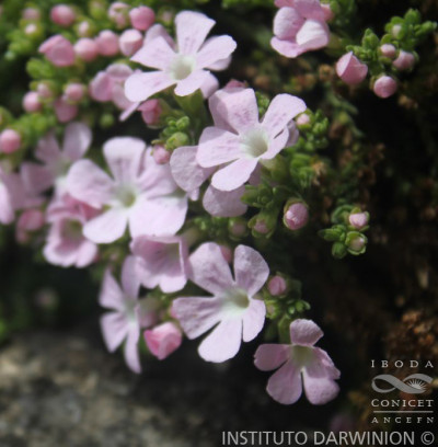 Sufrútices de 5-15 cm de alto. Tallos glabros o glanduloso- pubescentes, entrenudos de 0,1-3,5 mm de largo. Hojas sésiles, imbricadas; láminas ovadas, a veces obovadas o elípticas, de 1-4,5 × 1-3,5 mm, base amplexicaule, ápice agudo, carnosas, cónvacas, cara adaxial glanduloso-pubescente, cara abaxial glabra o glanduloso-pubescente. Flores solitarias, axilares, ebracteadas, con pedicelos de 1-6 mm de largo, glanduloso- pubescentes. Cáliz 5-partido, de 2,3-2,7 mm de largo, densamente glanduloso-pubescente interna y externamente; lóbulos elípticos, de 2-3 × 0,6-1 mm, ápice redondeado, no emarginados, cara abaxial sin venas prominentes. Corola rosada o púrpura, en ocasiones blanca, sub-actinomorfa, de 9,8-14,5 mm de largo; tubo de 6-8 mm de largo. Estambres 4, didínamos; estaminodio presente, dorsal. Ovario 1,3-1,6 mm de largo, glanduloso-pubescente; estilo incluso; estigma poco diferenciado. Cápsulas orbiculares, comprimidas, de 2-3 × 2-3 mm, glabras o con escasos pelos glandulares, con la base del estilo persistente. Semillas fusiformes a poliédricas, de 0,6-0,7 mm de largo, testa reticulada.