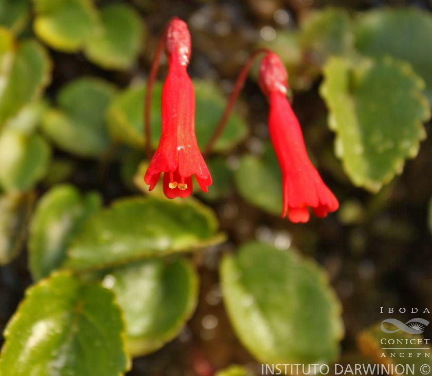 Observaciones: Ourisia ruellioides se distingue fácilmente de la otra especie con flores rojas, O. coccinea, por poseer corolas regulares, hojas no rosuladas de margen serrado y por ser glabras a glabrescentes, en cuyo caso nunca poseen pelos glandulares. Nombre vulgar. «Flor de la cascada» (De la Peña & Pensiero, 2004).