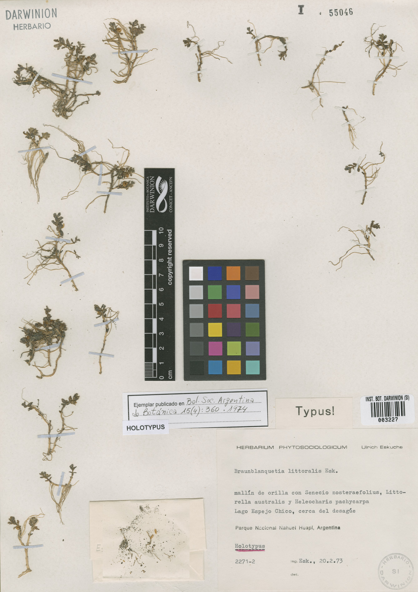 Material Tipo: Argentina. Río Negro. Bariloche, orilla Nahuel Huapi, F. Fonk 33 (lectotipo, SGO 000004743!, designado como «holotipo» por R. A. Rossow, Parodiana 2: 128. 1983).
