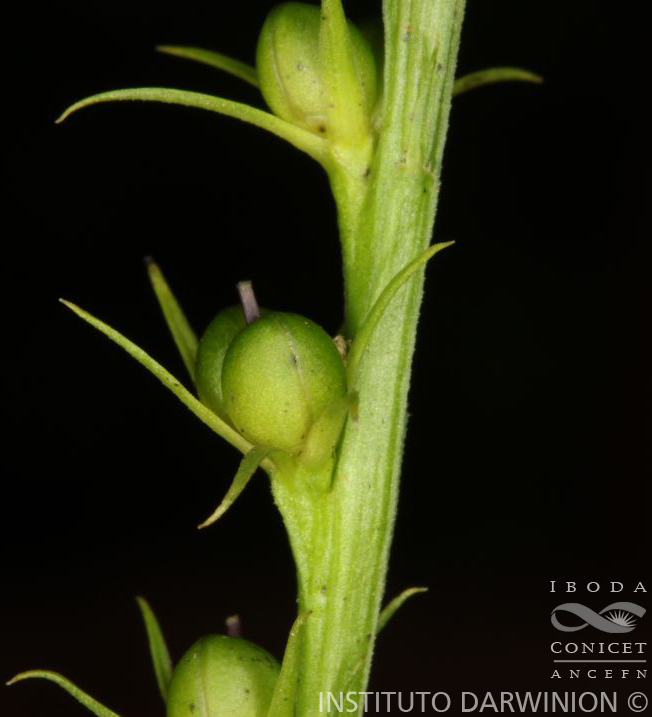 Hierba perenne con tallos erectos de 3,5-65 cm de alto, 4-angulares, glabros o escabrosos, con alas angostas, los entrenudos generalmente mayores en longitud que las hojas. Hojas ovadas o elípticas, de 20-95 × 5-40 mm, las superiores reunidas de a 4 en pseudoverticilos, las inferiores opuestas, agudas, 5-nervadas, glabras a escabrosas, membranáceas o subcoriáceas, subsésiles; estípulas de 1 mm de largo, las de las hojas basales generalmente triangulares y las de las apicales truncadas, escabrosas. Inflorescencia terminal, solitaria o acompañada de varias flores axilares, de 2,5-11 cm de largo, pedúnculo de 1-2 mm de largo, con 5-20 flores subsésiles; brácteas florales ca. 1,5 mm de largo, lineales, con el borde escabroso; cáliz de 3-6 mm de largo, los segmentos lineales y con glándulas en su porción basal; corola de 7-13 mm de largo, blanca, lóbulos agudos, alcanzando 1/3 a igual largo que la corola; estambres con anteras ca. 1 mm de largo. Fruto una cápsula de 2,5-3,5 × 1,5-2,5 mm.