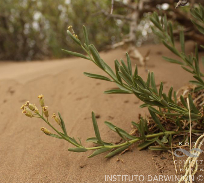 Subarbustos leñosos en la base; tricomas ausentes o unos pocos presentes, ramificados, en el ápice de las hojas. Tallos de 15-50 cm de alto, erectos a ascendentes, unos pocos desde la base, profusamente ramificados en la porción superior, glabros, glaucos. Hojas sésiles, lineares a linear-oblongas, de 1,5-6 × 0,3- 1(-1,3) cm, carnosas, aplanadas, glabras o ralamente pubescentes en el ápice, coriáceas al secarse, no auriculadas, ápice obtuso a subagudo, margen entero. Racimos ebracteados, 10-40-floros; pedicelos fructíferos de 0,5-1(-2) mm de largo, glabros, robustos, fuertemente recurvados, rara vez subdivaricados y rectos. Sépalos oblongos, de 6-9 × ca. 1,5 mm, glabros; pétalos amarillos, linear-oblanceolados, de 10-15 × 3-4 mm, glabros; anteras lineares, de 2-2,5 mm de largo; filamentos de 7-9 mm de largo, dilatados en la mitad inferior; óvulos 25-40. Frutos lineares, de (2-)2,8-4,5(-5,5) cm × 2-2,5 mm, rectos o ligeramente curvados, no torulosos; valvas gruesas, coriáceas, con un nervio central prominente y nervios laterales conspicuos; ginóforo de 1-2 mm de largo; estilo delgado, de 0,2-0,5 mm de largo. Semillas 1-seriadas, ovoides, de 2-2,5 × 1-1,5 mm, castañas, usualmente con un ala distal diminuta.