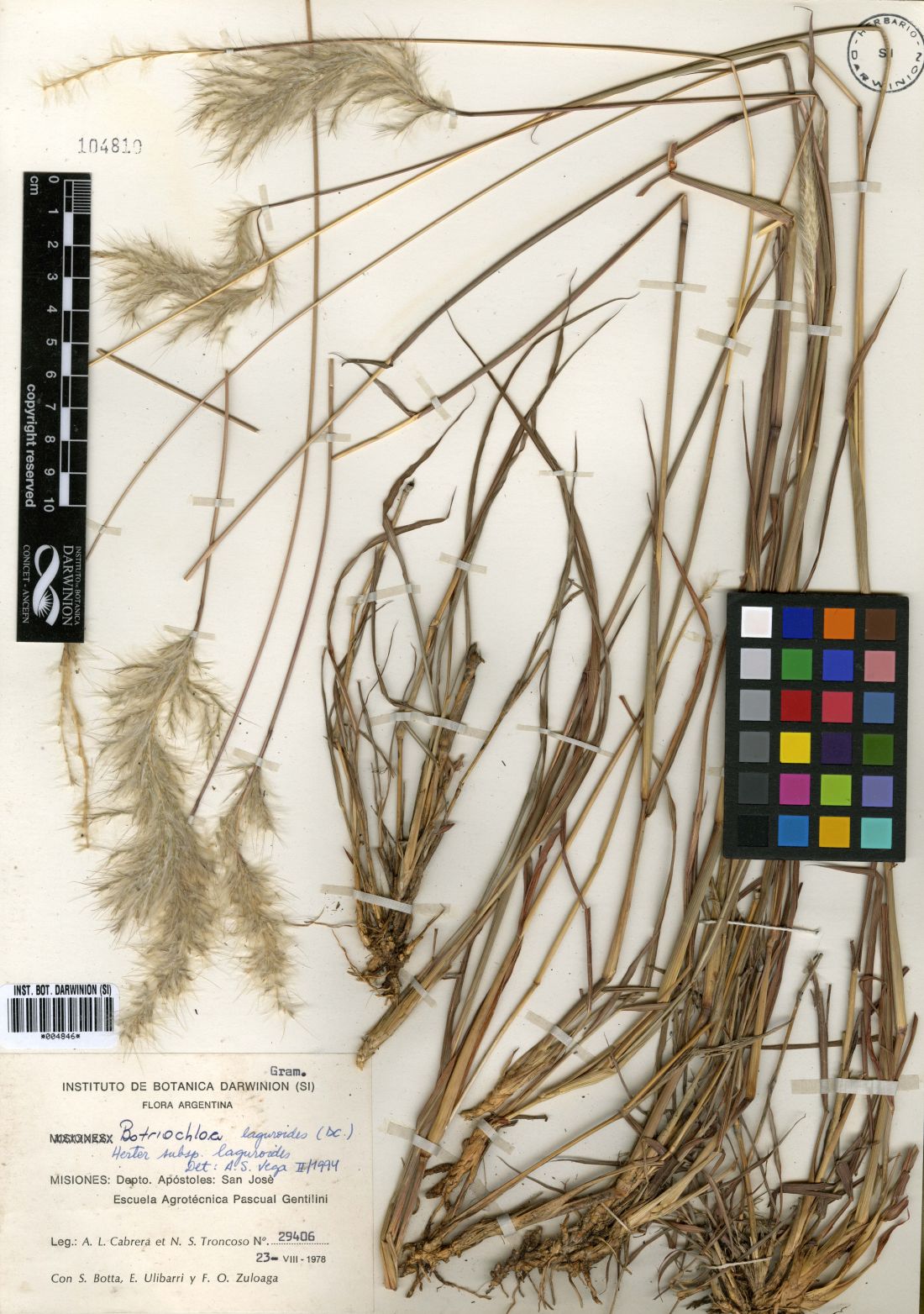 Andropogon saccharoides Sw. subsp. laguroides (DC.) Hack.(DC.) Hack. Monogr. Phan. 6: 495. 1889