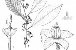 Arbustos hasta de 2 m de alto; tallos y hojas jóvenes con pubescencia aracnoidea densa, de tricomas delicados, dendríticos, prontamente caducos; corteza de las ramas viejas castaño grisácea, oscura. Unidades simpodiales 1-foliadas. Pecíolos de 1,5-1,6 cm; láminas elípticas a estrechamente elípticas u obovadas, de (3,5-)9-14 × (-1,5)4-5 cm, base atenuada, ápice agudo u obtuso, acuminado, con el ancho máximo en la zona media; nervios laterales 9-12 pares; epifilo glabro; hipofilo con pubescencia muy esparcida, en especial sobre los nervios. Inflorescencia opuesta a las hojas, casi sésiles, (6-)10-16(-20)- flora, simple, de 1-1,3 cm, pedúnculo de 1-3 mm, raquis densamente flocoso, con tricomas dendríticos. Pedicelos delgados, más o menos reflexos en la antesis, de 1,5-2,5 cm, glabros u ocasionalmente con tricomas dendríticos; cicatrices de los pedicelos muy próximas entre sí; cáliz truncado, en forma de copa aplanada y abierta, de 1-1,5 mm, lóbulos apenas distinguibles, con pubescencia aracnoidea esparcida en su exterior; corola hendida hasta los ¾ de su longitud, blanca, de 0,8-1,5 cm de diámetro, lóbulos de 5-6,5 × 2,5-3 mm, planos en la antesis, con las puntas y bordes diminutamente papilosos; filamentos con su porción libre ca. 1 mm, porción fusionada ca. 0,25 mm o nula, anteras de 3- 3,5 × 1-1,5 mm, dehiscentes por poros apicales en forma de gota; ovario glabro, estilo recto, ca. 5 mm, estigma clavado, papiloso. Frutos y semillas no vistos.