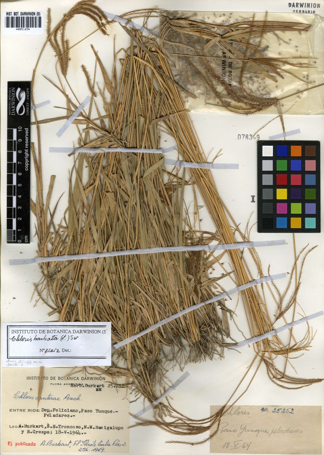 Hierbas anuales de 15-95 cm de alto, cespitosa; cañas erectas, ramificadas, decumbentes y radicantes en los nudos inferiores; vainas aquilladas, glabras, pilosas hacia la parte distal; lígulas breves, de 0,3-0,6 mm de largo, truncadas, a veces cortamente ciliadas; láminas de 7-25 cm x 3-6 mm, planas, agudas, glabras, ocasionalmente pilosas hacia la base. Inflorescencias formadas por (5-)7-15 racimos de 3-8 cm de largo, digitados en un verticilo, mas o menos erectos, frecuentemente flexuosos y púrpuras; raquis subtrígono, escabroso. Glumas 2, lanceoladas a estrechamente aovadas, la inferior de 1,2-2,1 mm de largo, la superior (1,8-)2,3-2,7 mm de largo, a veces mucronada; lemma inferior fértil de 2-2,7 x 0,4-0,7 mm, ovada a elíptica, aguda, no surcada lateralmente, dorso ocasionalmente con pelos esparcidos, escasos y adpresos, carina glabra o con escasos pelos a ambos lados del nervio, margen superior con pelos hasta de 2 mm de largo, divergentes o adpresos, arista de 4-8 mm de largo; pálea de igual longitud que la lemma, lanceolada, ápice agudo, entero, biaquillada, quillas escabrosas, dorso glabro; lodículas 2, soldadas parcialmente a la base de la pálea; estambres 3, anteras de 0,6-0,7 mm de largo; antecios estériles 2, raro 3, el inferior de 0,9-1,3 mm de largo, obtriangulado, truncado, dilatado, usualmente glabro, con arista de 4-7 mm de largo, el superior algo menor, ovoide a subesférico, marcadamente dilatado y aristado; cariopsis de 1,1-1,4 x 0,4-0,5 mm, elipsoide a obovoide.