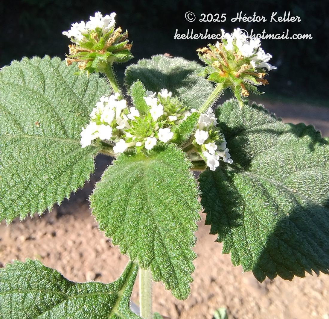 Arbustos hasta de 1,5 m de alto; ramas hirsutas. Hojas opuestas, rara vez ternadas; pecíolos de 1-2 cm de largo; láminas de 3-6(11) x 2-5(6) cm, ovadas, base subcordada y decurrente, ápice acuminado, margen aserrado-crenulado, cara adaxial rugosa, hirsuta, cara abaxial marcadamente reticulado-nervosa, incano tomentosa. Sinflorescencias en pleiobotrios homóteticos frondosos; florescencias parciales en espigas capituliformes ca. 1 cm de largo, alargadas en la fructificación hasta ca. 2 cm; pedúnculos hasta de 4 cm de largo, rígidos, menores que la hoja tectriz; brácteas de 4-6 mm de largo, imbricadas, ovadas, hirsutas. Cáliz ca. 1 mm de largo, tubuloso; corola blanca con fauce amarilla, ca. 8 mm de largo, tubo recto, exteriormente pubescente. Fruto esférico ca. 3 mm de diámetro, negruzco, brillante, separándose en dos clusas a la madurez.