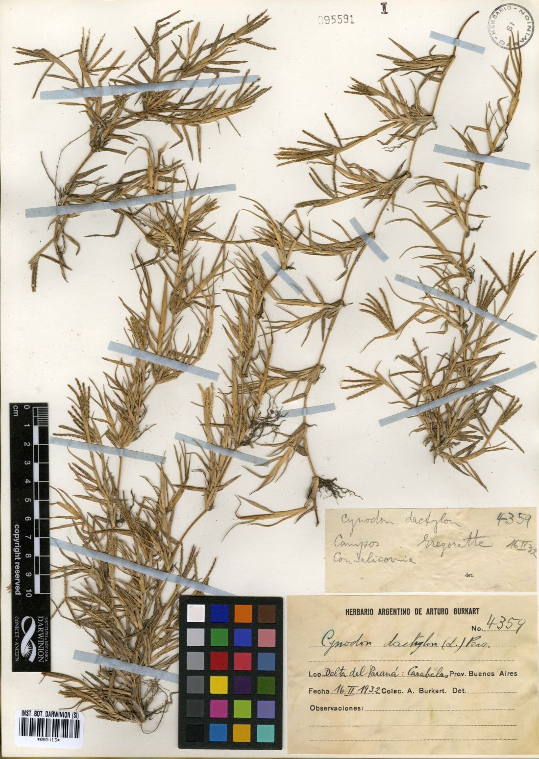 Plantas perennes, rastreras, estoloníferas, radicantes en los nudos inferiores; cañas floríferas más o menos erguidas hasta de 40 cm de alto; vainas glabras (excepto la región ligular que presenta pelos largos), comprimidas lateralmente; lígulas membranáceo-ciliadas hasta de 0,5 mm de largo; láminas lineares, de 0,5-15 cm x 1-4 mm, planas o conduplicadas, glabras a hirsutas; prefoliación conduplicada. Inflorescencia formada por 2-8 racimos unilaterales, digitados; raquis de los racimos de 1,2-6 cm de largo, triquetro. Espiguillas anchamente elipsoides, de 2-2,5 mm de largo; 1-2(-3) floras; glumas generalmente desiguales, 1-nervias, la inferior hasta ½ ó mayor que la longitud del antecio, la superior desde ?-¾ y hasta superando la longitud del mismo, de ápice mútico o aristulado; lemma tan larga como la espiguilla, lisa, pajiza, comprimida lateralmente, carenada, con la carena brevemente ciliolada, mútica o mucronulada en el ápice; pálea de similar consistencia que la lemma, 2-nervada, glabra; raquilla prolongada, setiforme; cariopsis subelipsoidea, ca. 1 mm de largo, comprimida lateralmente, castaña.