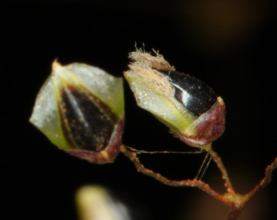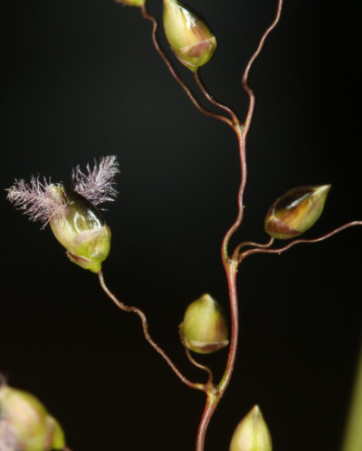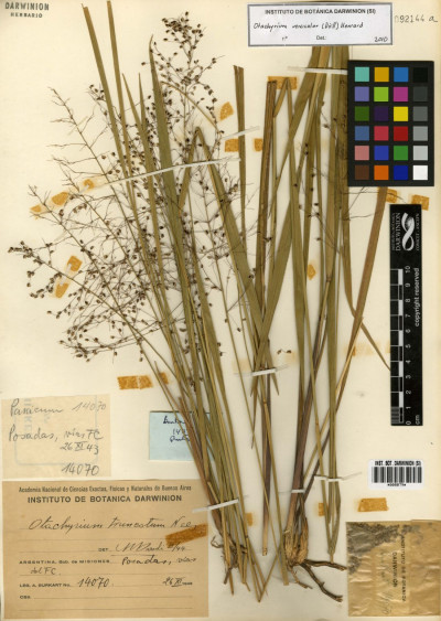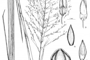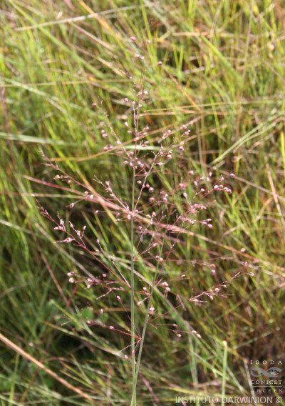 Planta perenne, rizomatosa, con rizomas manifiestos; cañas erectas, simples, de 0,40-1(-1,5) m de alto; entrenudos de 12-27 cm de largo, rígidos, teretes, huecos, glabros; nudos glabros o pilosos, en este caso con pelos blanquecinos adpresos; vainas de 6-28 cm de largo, usualmente más cortas que los entrenudos, glabras a hirsutas, con pelos papilosos, rígidos, lisas a ligeramente escabriúsculas, verdosas a púrpuras, las basales fasciculadas, aquilladas, los márgenes membranáceos, glabros a pestañosos; lígulas 0,6-1,5 mm de largo, membranáceas, de ápice cortamente ciliado, con largos pelos por detrás en la base de la lámina o sin los mismos; láminas lineares, de 6-54 x 0,4-1,5 cm, planas, glabras a esparcidamente pilosas, escabriúsculas, gradualmente atenuadas hacia la base y el ápice, los bordes glabros, escabriúsculos, los inferiores ocasionalmente ciliados. Inflorescencia terminal exerta, pedúnculo hasta de 30 cm de largo, terete, glabro, estriado, panoja laxa, piramidal, multiflora, de 7-28 x 5-15 cm; eje principal anguloso, surcado, glabro a esparcidamente piloso, finamente escabroso, pulvínulos glabros o con escasos pelos, castáneos a purpúreos; ramificaciones de primer orden de 2-9 cm de largo, divergentes, ascendentes, alternas, opuestas o verticiladas, eje de las ramificaciones flexuoso, liso, glabro o con pelos esparcidos, pajizo o con tintes purpúreos, ramificaciones de segundo orden poco divergentes; pedicelos desiguales, el superior 1-2,5 veces más largo que el basal, teretes, glabros, flexuosos, lisos, de ápice cupuliforme. Espiguillas ovoides, de 2,1-3,3 x 1,2-2,5 mm, glabras, glumas subiguales, más cortas que el largo de la espiguilla, membranáceas, pajizas o con tintes purpúreos; gluma inferior anchamente ovada, de 0,8-1,2 mm de largo, subaguda, glabra o pilosa en la porción superior, escabrosa sobre el nervio medio, no abrazadora, 1-3 nervia; gluma superior anchamente ovada, de 0,8-1,1 mm de largo, de ápice truncado y dorso convexo, 5-7 nervia; lemma inferior ovado-lanceolada, de 2,1-3,1 mm de largo, membranácea, navicular, cuando madura coriácea, 3-nervia; pálea inferior membranácea, de 2-3,1 x 1,3-1,4 mm, tan larga como el antecio superior, cuando madura de 2,1-2,5 mm de ancho, 2-nervia, con las quillas escabrosas a cilioladas; flor inferior estaminada, lodículas de 0,5 mm de largo, estambres 3, anteras de 1,3-1,8 mm de largo; antecio superior angostamente elipsoide, de 1,9-2,9 x 1,3-1,9 mm, endurecido, liso, lustroso, castaño oscuro a la madurez, blanquecino junto al ápice; lemma superior gibosa, 5-nervia; pálea superior de dorso plano, 2-nervia; cariopsis ovoide, de 1,5 x 0,7 mm, plano-convexa, pajiza; hilo subbasal, oblongo, embrión ½ del largo de la cariopsis.