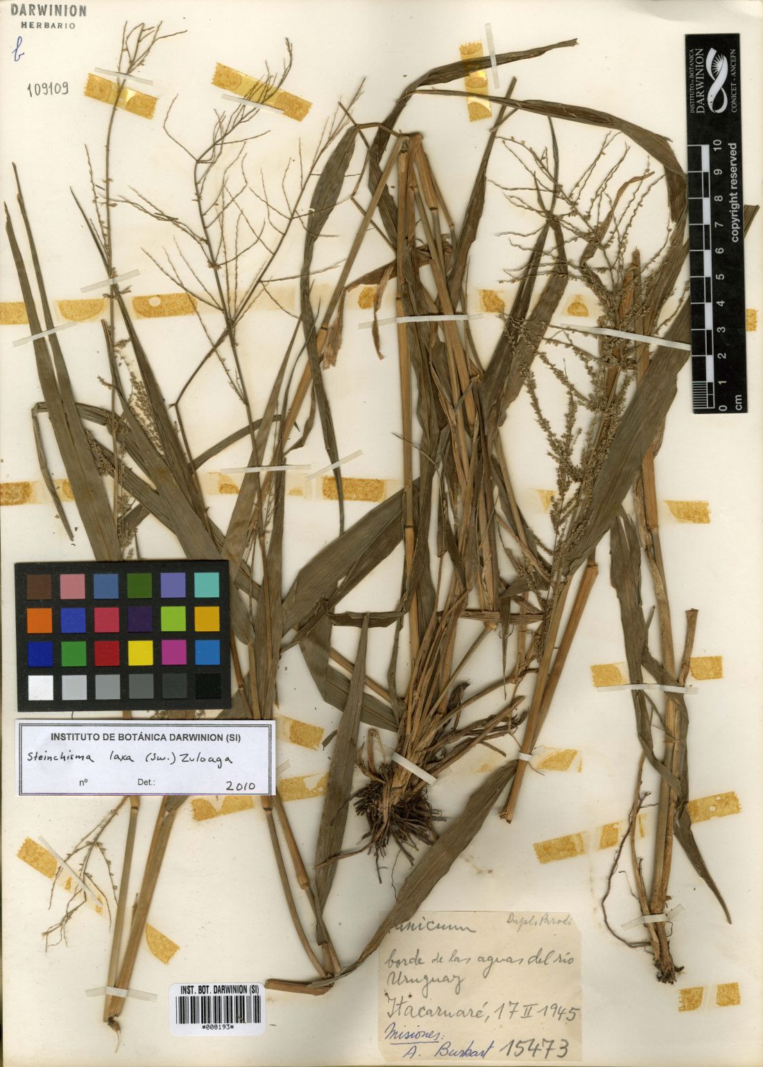 Plantas perennes; cañas decumbentes, arraigadas en los nudos inferiores a estoloníferas, luego ascendentes a erectas, de 15-80 cm de alto, simples o ramificadas en los nudos superiores; entrenudos de 2-15 cm de largo, glabros, huecos; nudos oscuros, pilosos a glabros; vainas de 2-11 cm de largo, papiloso-pilosas, con pelos tuberculados caducos, a glabras, los márgenes ciliados con pelos tuberculados, más hacia la porción distal; cuello piloso a glabro; lígulas de 0,4-0,8 mm de largo, membranáceas, cortamente laciniadas en la porción superior; láminas lanceoladas, de 4-30 cm x 3-14 mm, planas, de base redondeada a ocasionalmente subcordada, esparcidamente pilosas a glabras, los márgenes escabriúsculos. Inflorescencia terminal una panoja laxa a contraida de 6-29 x 2-14 cm; eje principal escabroso, anguloso, pulvínulos corta a largamente pilosos; ramificaciones de primer orden alternas a opuestas, ascendentes o divergentes, con espiguillas congestas en ramificaciones de segundo orden cortas; pedicelos de 0,5-1,4 mm de largo. Espiguillas angostamente elipsoides, de 1-1,7 x 0,4-0,6 mm, pilosas, con pelos caducos, a glabras, verdosas o con tintes violáceos; gluma inferior ovada, de 0,6-1,1 mm de largo, 2/5 a ½ del largo de la espiguilla, 3-nervia, el nervio medio escabroso hacia la porción superior; gluma superior de 1-1,6 mm de largo, cubriendo o no el ápice del antecio superior, 5-nervia, nervio medio escabroso; lemma inferior de 0,9-1,6 mm de largo, glumiforme, 5-nervia; pálea inferior oblonga, de 1,1-1,5 x 0,4-0,6 mm, membranosa, cortamente ciliada en los márgenes, ocasionalmente expandida a la madurez; flor inferior estaminada, estambres 3, ocasionalmente ausentes; antecio superior elipsoide, de 1-1,4 x 0,4-0,5 mm, escabroso hacia el ápice, papiloso, endurecido, lustroso; estambres 2, anteras de 0,3-0,7 mm de largo; cariopsis elipsoide, 0,8-0,9 x 0,4-0,6 mm; hilo oblongo, embrión ½ del largo de la cariopsis.