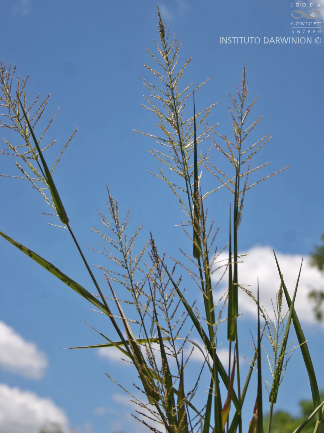 Plantas perennes; cañas decumbentes, arraigadas en los nudos inferiores a estoloníferas, luego ascendentes a erectas, de 15-80 cm de alto, simples o ramificadas en los nudos superiores; entrenudos de 2-15 cm de largo, glabros, huecos; nudos oscuros, pilosos a glabros; vainas de 2-11 cm de largo, papiloso-pilosas, con pelos tuberculados caducos, a glabras, los márgenes ciliados con pelos tuberculados, más hacia la porción distal; cuello piloso a glabro; lígulas de 0,4-0,8 mm de largo, membranáceas, cortamente laciniadas en la porción superior; láminas lanceoladas, de 4-30 cm x 3-14 mm, planas, de base redondeada a ocasionalmente subcordada, esparcidamente pilosas a glabras, los márgenes escabriúsculos. Inflorescencia terminal una panoja laxa a contraida de 6-29 x 2-14 cm; eje principal escabroso, anguloso, pulvínulos corta a largamente pilosos; ramificaciones de primer orden alternas a opuestas, ascendentes o divergentes, con espiguillas congestas en ramificaciones de segundo orden cortas; pedicelos de 0,5-1,4 mm de largo. Espiguillas angostamente elipsoides, de 1-1,7 x 0,4-0,6 mm, pilosas, con pelos caducos, a glabras, verdosas o con tintes violáceos; gluma inferior ovada, de 0,6-1,1 mm de largo, 2/5 a ½ del largo de la espiguilla, 3-nervia, el nervio medio escabroso hacia la porción superior; gluma superior de 1-1,6 mm de largo, cubriendo o no el ápice del antecio superior, 5-nervia, nervio medio escabroso; lemma inferior de 0,9-1,6 mm de largo, glumiforme, 5-nervia; pálea inferior oblonga, de 1,1-1,5 x 0,4-0,6 mm, membranosa, cortamente ciliada en los márgenes, ocasionalmente expandida a la madurez; flor inferior estaminada, estambres 3, ocasionalmente ausentes; antecio superior elipsoide, de 1-1,4 x 0,4-0,5 mm, escabroso hacia el ápice, papiloso, endurecido, lustroso; estambres 2, anteras de 0,3-0,7 mm de largo; cariopsis elipsoide, 0,8-0,9 x 0,4-0,6 mm; hilo oblongo, embrión ½ del largo de la cariopsis.