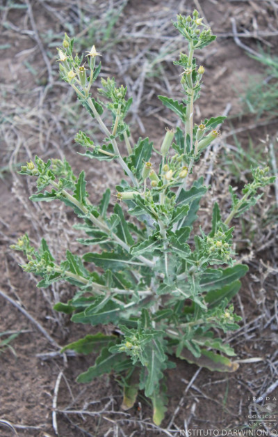 Hierba bianual, hasta de 85 cm de alto, totalmente cubierta por pubescencia hirsuta de tricomas escabrosos y gloquidiados; tallos erguidos simples o ramificados hasta de 1,5 cm de diámetro. Hojas elípticas, estrechamente ovadas u obovadas, de 2,5-20 × 0,5-3,5 cm, alternas, dentadas o lobadas hasta pinnatisectas, las basales formando una roseta, largamente atenuadas, muy próximas entre sí, las superiores sésiles de base truncada a auriculada. Inflorescencias multifloras, frondoso-bracteosas, basitónicas; brácteas, estrechamente ovadas, de 5-50 × 5-21 mm, a veces con el ápice agudo, enteras o con pequeños dientes muy aislados, ocasionalmente con un lóbulo basal, pubescentes. Flores subsésiles; lóbulos del cáliz 5, estrechamente triangulares, de 5-6 × 2-3,5 mm; pétalos 5, obovados o elípticos, de 6,5-10,5 × 2,3-3,5 mm, atenuados en la base, a veces con el ápice agudo a apiculado, en general con unos pocos tricomas en el ápice, blanco-amarillentos o amarillos; estaminodios externos 5, petaloides en color, forma y tamaño; estambres 40-60, dispuestos en 2 series, con filamentos de 3-7 mm de largo, desiguales, los de la serie interna generalmente más cortos; anteras elipsoideas, de 0,3-0,6 mm de largo; ovario de 6-13 × 2,5-5 mm, con placentas anchas, óvulos en 2 series, por excepción una; estilo de 5,5-7 mm de largo, dividido casi hasta la base, superficies estigmáticas, tres,en el tercio superior, muy próximas. Frutos cápsulas subcilíndricas, de 5-27 × 3-8 mm, sésiles, pubescentes, dehiscentes por 3 valvas apicales. Semillas 70-110, suborbiculares, de 2,5-3,5 mm de diámetro, aladas, blanquecinas hasta ocráceas.