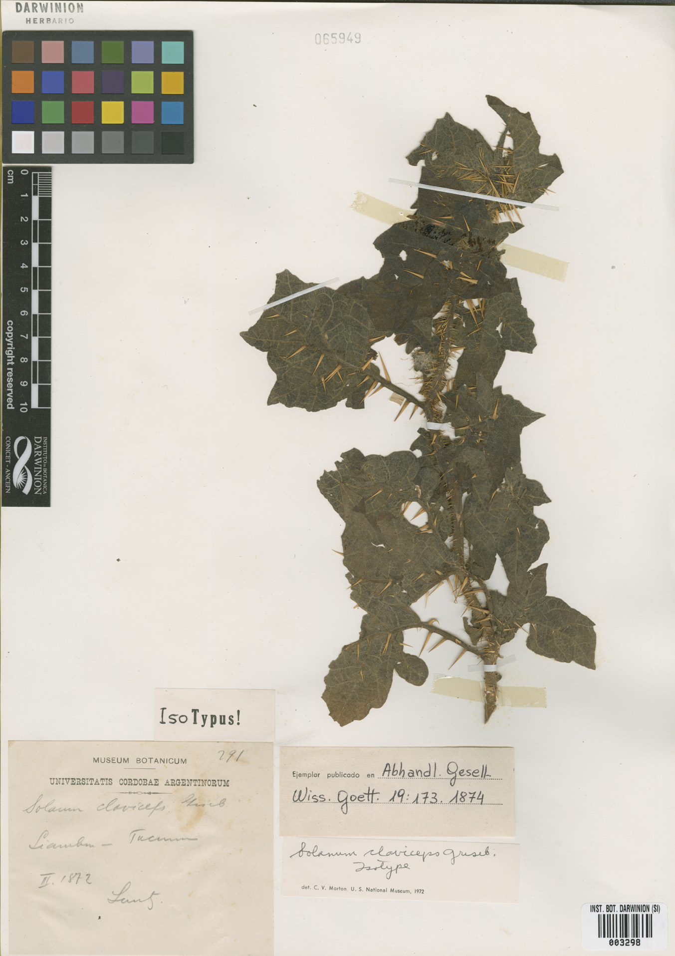 Solanum claviceps Griseb. Abh. Königl. Ges. Wiss. Göttingen 19: 221. 1874