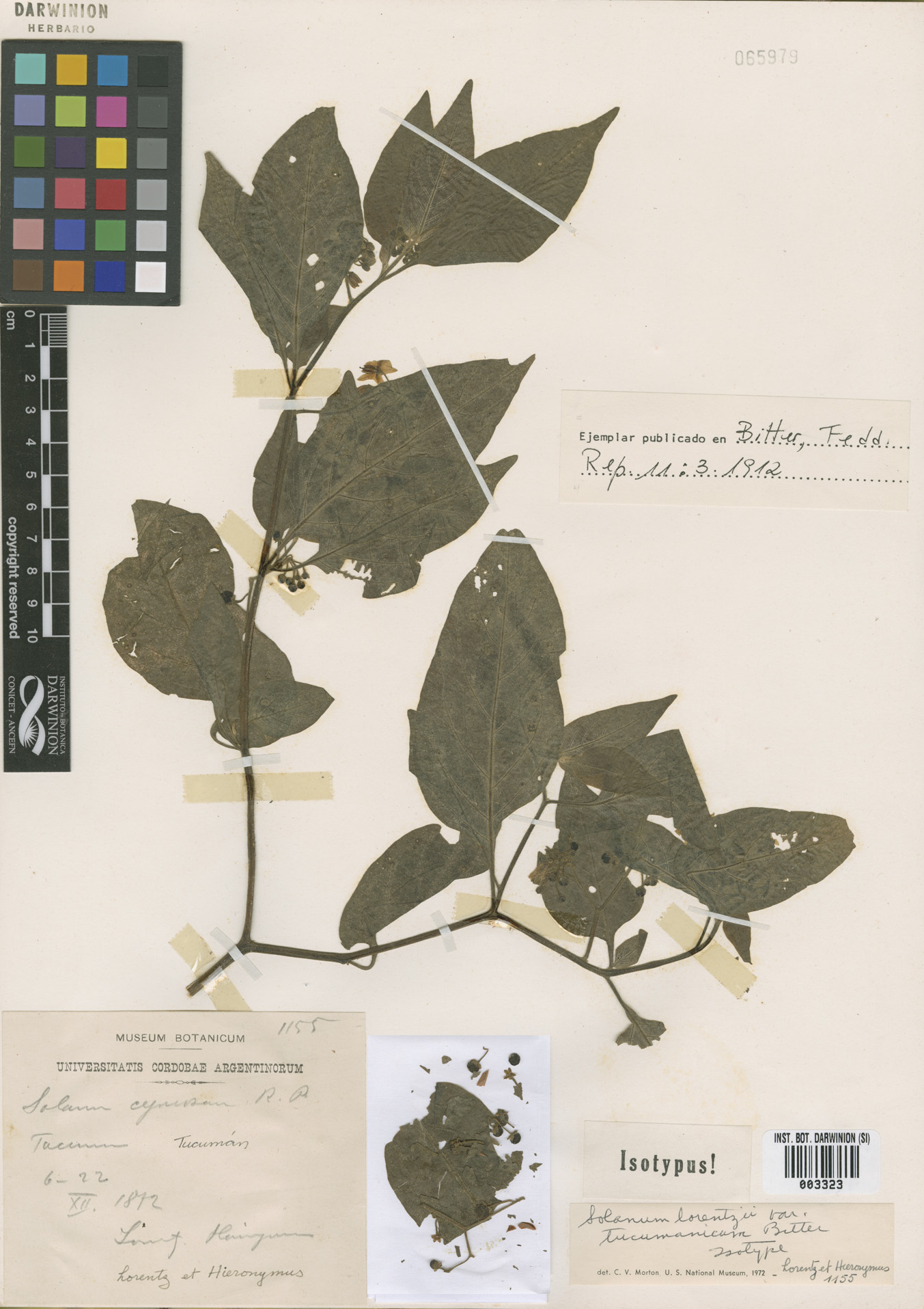 Tipo de Solanum lorentzii Bitter var. tucumanicum Bitter