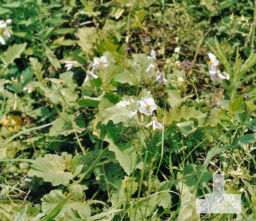 Hierbas perennes, andromonoicas, con raíces gemíferas; tallos rastreros o decumbentes, cubiertos por tricomas estrellados largamente estipitados, con 4 rayos laterales y uno central igual o mayor, 1- ó 2-celular, por acúleos subaciculares y por estructuras intermedias entre acúleos y tricomas. Pecíolos aculeados y con tricomas como los del tallo; láminas ovadas a orbiculares, aculeadas en ambas caras, con numerosas sinuosidades o lóbulos anchos y redondeados, base cordada, desigual o no, ápice obtuso; epifilo con tricomas estrellados cortamente estipitados, con unos 6 rayos laterales y uno central de igual longitud, a veces 2-celular, y con tricomas glandulares cortos y esparcidos; hipofilo con tricomas estrellados corta a largamente estipitados, con 5-8 rayos laterales y uno central igual o algo mayor. Inflorescencia pedunculada, no ramificada, con (2-)4(-6) flores perfectas y (0-)3(-6) flores estaminadas; pedúnculos y pedicelos con tricomas y acúleos como los del tallo. Cáliz con acúleos aciculares y tricomas estrellados largamente estipitados, lóbulos anchamente triangulares; corola rotácea, ca. 3,6 cm de diámetro, lilacina; anteras iguales, de 8-9 mm, amarillas. Baya casi completamente encerrada por el cáliz acrescente, de 1 cm de diámetro, amarilla, de consistencia dura, pericarpo poco carnoso; semillas ± 115 por fruto, de 3-4 mm, amarillas, rebordeadas.