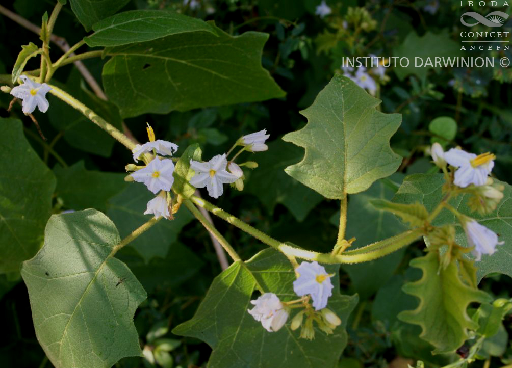 Arbustos hermafroditas, de 0,5-3 m de alto; tallos con tricomas estrellados cortamente estipitados, con algunos tricomas glandulares y con acúleos subaciculares, de 3-10 mm, esparcidos; hojas pecioladas, algo discoloras, inermes o a veces con algunos acúleos subaciculares en el pecíolo y el nervio medio; láminas ovadas, desde subenteras o hasta con 3-4 pares de lóbulos profundos, enteros o a su vez lobados, base cordada o desigual, ápice agudo; epifilo con tricomas cortamente estipitados, con 4- 6 rayos laterales y un rayo central igual o algo menor; hipofilo con densos tricomas estrellados largamente estipitados, con 4-8 rayos laterales más un rayo central igual o algo menor. Inflorescencia pedunculada, de aspecto escorpioide cuando madura, no ramificada o a veces ramificada una vez en la base, con (15-)20(-28) flores, todas perfectas. Cáliz de 4-7 mm, lóbulos ovados, acuminados; corola rotácea, de 3,2 cm de diámetro, blanca; anteras iguales, de 7-9 × 1 mm, amarillas. Baya roja, 5-6 mm de diámetro, conteniendo hasta 30 semillas; semillas lenticulares, de 2 mm, amarillas, lisas.