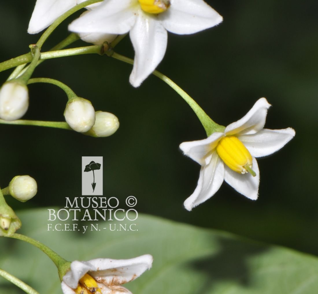 Árboles pequeños o arbustos, de 1,5-5 m de alto, con ramas arqueadas; tallos glabros a densamente pubescentes, con tricomas simples o dendríticos de 0,5-1 mm, a menudo fuertemente alados por la base decurrente de las hojas, alas de 5 mm de ancho; corteza de los tallos más viejos castaño-rojizo, oscuro y brillante. Unidades simpodiales plurifoliadas. Hojas simples; pecíolos de 0,7-2 cm, glabros o pubescentes, nunca volubles; láminas angostamente elípticas a lanceoladas, de (3,5-)6-15 × 1,2-5 cm, base atenuada, ápice acuminado, margen entero, a veces revoluto, membranáceas a ligeramente carnosas; epifilo glabro o escasamente (a veces densamente) pubescente; hipofilo con mechones densos de tricomas dendríticos en la axila de los nervios, estos tricomas en ocasiones se extienden a lo largo del nervio medio o en la lámina y en las hojas más densamente pubescentes; nervios primarios 10-15(-20) pares. Inflorescencia terminal o lateral, de 4-15 cm, varias veces ramificada, con 10-60 flores, glabra o con tricomas simples o dendríticos, más densos en los extremos de las ramificaciones y en la inserción de la flor; pedúnculo de 1,5-3,5 cm. Pedicelos de 1-1,2 cm × ca. 0,5 mm de diámetro en la base y ca. 1 mm en el ápice, erectos a nutantes, glabros, articulados en la base e insertos en una corta manga; cicatrices de los pedicelos mayormente agrupadas en los extremos de las ramificaciones de la inflorescencia sobre pequeñas plataformas o irregularmente espaciadas cada 2-5 mm, más apretadamente en la base; botones ovoide-puntiagudos o turbinados con una protuberancia apical; tubo calicinal cupuliforme, de 1,5-2,5 mm, enangostándose abruptamente hacia el pedicelo, lóbulos de 1,5-2 mm, cuadrados, apiculados, puntas muy pubescentes con tricomas simples que se extienden adaxialmente, superficie adaxial densamente papilosa; corola estrellada, lobada en 1/2 a 3/4 de su longitud, blanca, a menudo con manchas purpúreas, de 1,8-2 cm de diámetro, lóbulos ca. 7 × 5 mm, con las puntas cuculadas, densamente pubescentes; filamentos libres de 0,5-1 mm, glabros, anteras de 4,5-5,5 × 1-1,5 mm; estilo de 6,5- 7 mm, glabro, estigma diminutamente capitado a ligeramente clavado. Baya negra o negro-verdosa, de 1-1,2 cm, pericarpo delgado y brillante, glabro; pedicelo fructífero de 1,5-1,7 cm y ca. 1,5 mm de diámetro en la base, leñoso, más o menos nutante; semillas 20-40 por baya, de 2,5-3 × 2-2,5 mm, castaño-rojizas o amarillo- pálidas, testa con células cuadradas cuyas paredes se desintegran por lo que las semillas parecen pilosas.