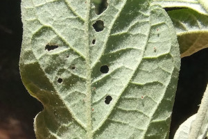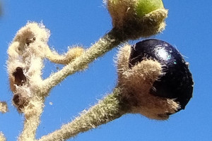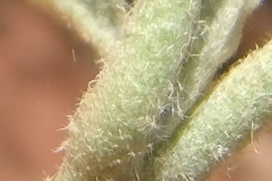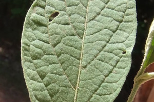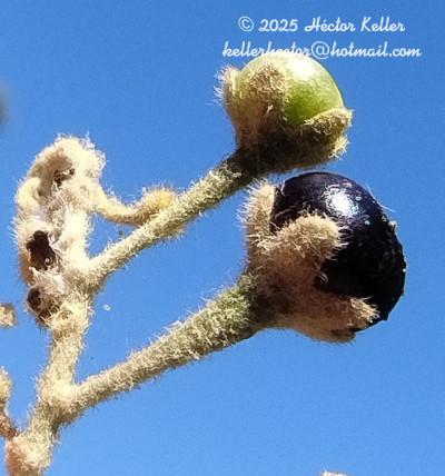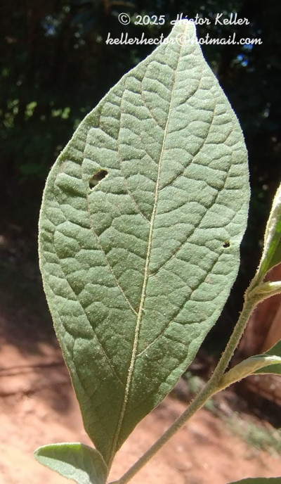Arbustos hasta de 3 m de alto; tallos con tricomas ramificados y estrellados, sésiles o con pie corto a largo. Hojas desigualmente geminadas; pecíolos de 3-15 mm; láminas elípticas, las más grandes de 3,3-11,5 × 1-5,2 cm, las pequeñas de 1,2-3,9 × 0,6-2,3 cm, base cuneada a atenuada, ápice largamente acuminado, con indumento igual que el del tallo, discoloras; epifilo verde pardo a verde oliva; hipofilo verde oliva claro a verde-amarillento; hojas axilares ausentes. Inflorescencia axilar, ramificada varias veces, pluriflora, con 15-40 flores; pedúnculos de 1,2-2,2 cm. Pedicelos de 5-12 mm; cáliz de 2,5-3(-4) mm, partido hasta la mitad de su longitud, en el exterior con tricomas ramificados y glandulares, en el interior sólo con tricomas glandulares, lóbulos ovados, ca. 1,25 mm, obtusos; corola pentagonal, de 12-18 mm de diámetro, 12-15 mm de largo, excediendo la longitud del cáliz, blanca; filamentos de 0,8-1 mm, anteras ca. 3,5 mm; ovario glabro, estilo de 4,5 mm, superando la longitud del androceo. Baya de 5-10 mm, negruzca, morada, glabra; semillas de 2 × 1,75 mm.
